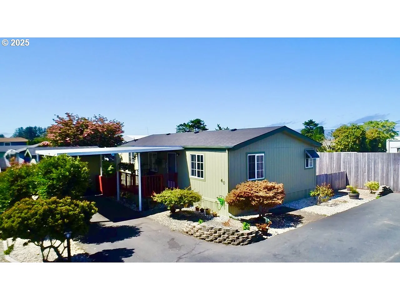 HUGE PRICE REDUCTION. PRICED TO SELL. MOTIVATED SELLER. This well maintained home is ready for you to make it your own. This home is located in a desirable 55+ Park and has the largest space lot in the park. Home has 1056 square feet, two bedrooms and two full bathrooms, an Open floor plan with vaulted ceilings. Very clean and ready to move into. This home has a new roof, new siding approximately 5 years ago, New hot water heater and new flooring in kitchen. It has a detached shed and a beautifully landscaped yard with a great lemon tree. Lots of wonderful colors in the yard year around. Yard is fully fenced for all your furry friends. This home is tucked back at the end of the street. Very quiet. Park includes water and sewer and the park monthly fee is 625. Must have park approval. Home is park approved and has been approved by the park for resale! Inspection report is on file!