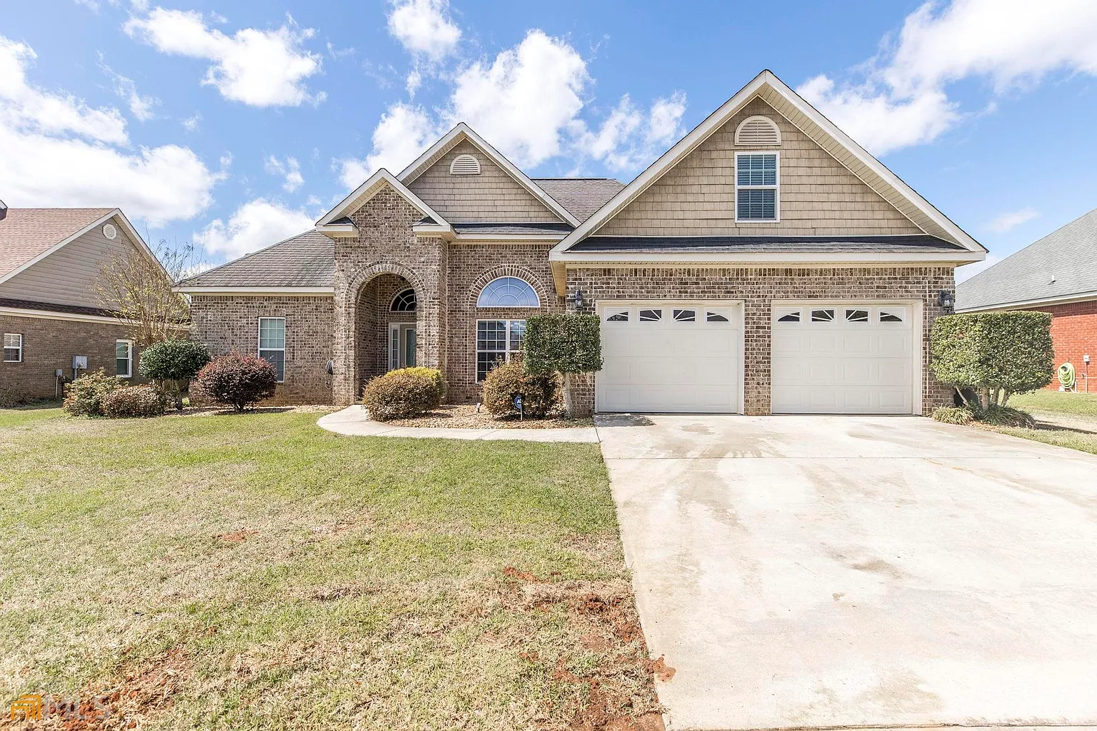 This lovely home is located minutes away from the interstate, eateries, shopping and features a 1.5 story, all brick split plan that's located in the Carrington Estates Subdivision. It consists of a family room, Jack and Jill bath, covered front porches and more. The interior has wood, carpet, and tile flooring, a formal dining room, a cozy kitchen with an area for bar seating and an eat in area. The spacious master BR has a large walk-in closet, double vanity, and separate tub/shower. The privacy fenced yard features a pad for parking a boat or RV, wooden covered pergola and more.