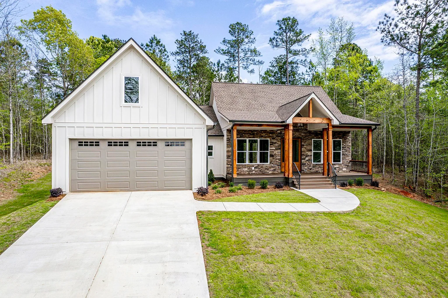 Beautiful New Construction in the Lake Oconee Area! Located in a sought-after Lake Oconee community with easy lake access (without the lakefront price), this thoughtfully designed home sits on a private 2.23-acre lot surrounded by mature shade trees—offering both space and serenity just minutes from downtown Greensboro. From the solid poured foundation and stone-accented exterior to the inviting rocking chair front porch and 8’ double entry doors, quality craftsmanship is evident throughout. Inside, the open-concept layout features 9–10 ft ceilings, waterproof SPC vinyl flooring, custom lighting, and abundant natural light. The gourmet kitchen is designed for entertaining with a large island, quartz countertops, marble backsplash, custom all-wood soft-close cabinetry, stainless appliances, and a spacious pantry with furniture-grade shelving. The split-bedroom floor plan offers privacy, with a luxurious primary suite featuring a vessel tub, tiled shower with frameless glass, dual vanity, and a custom closet with built-ins and direct access to the laundry room. Secondary bedrooms are well-appointed with a stylish shared bath. Upstairs, a versatile bonus space with a full bath provides the perfect guest suite, office, or flex space. Additional highlights include a 2-car garage with epoxied floors, TREX front porch and rear deck, and sodded yard. No HOA and just minutes to Greensboro—this is a rare opportunity for new construction in the Lake Oconee area.