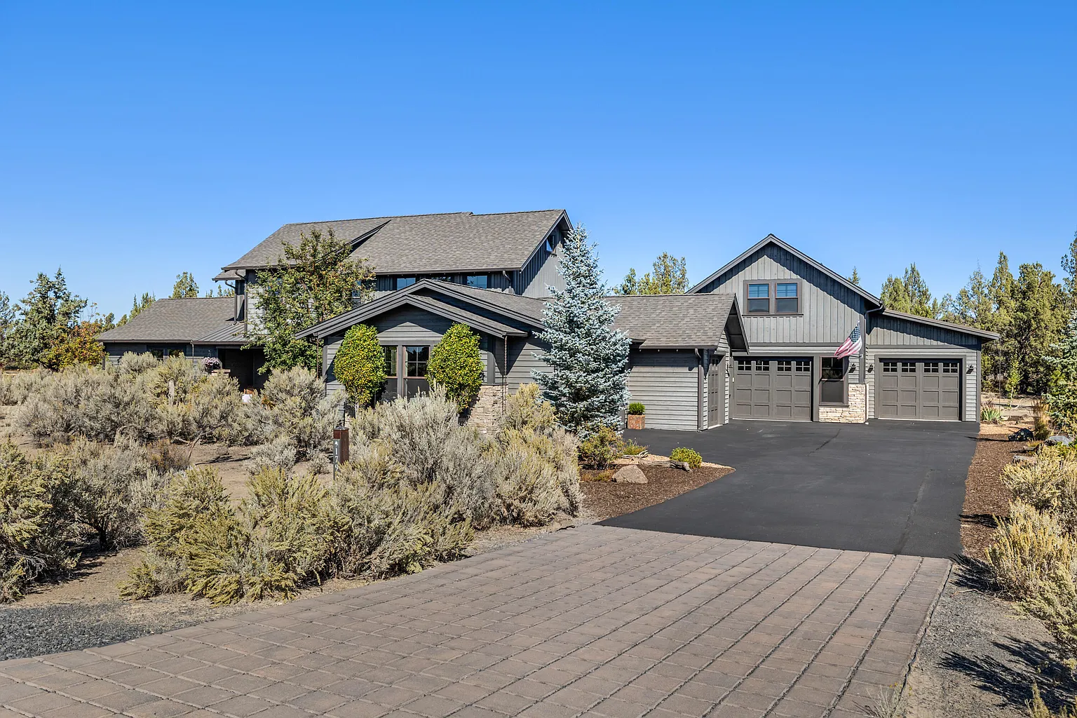 Your next retreat...NW Ranch style home w/custom upgrades throughout backs to the canal common space & access to acres of BLM. Open living area featuring oak hardwood floors, stone fireplace, wood plank accent walls & primary suite on the main. Oversized granite island in the kitchen is a focal point, double freezer/refrigerator w/ custom built in surround. Upstairs media/theatre room has top of the line sound equipment, platform theater chairs & custom cabinetry. The 2019 addition, built by PacWest, features guest space of 917sqft, ADA accessible, w/tile shower, full kitchen, pantry, stackable washer/dryer, & patio. Bonus loft with private office is ~600sqft. 1,200sqft shop, car lovers dream...professionally epoxy floors, built-in surround sound with subwoofer, led lighting, half bath, & upstairs craft room/gym w/private office. Enjoy the amenities of living at Brasada Ranch: 18 hole golf course, restaurants, miles of trails, equestrian center, 3 pools lazy river, slide, spa, & more.