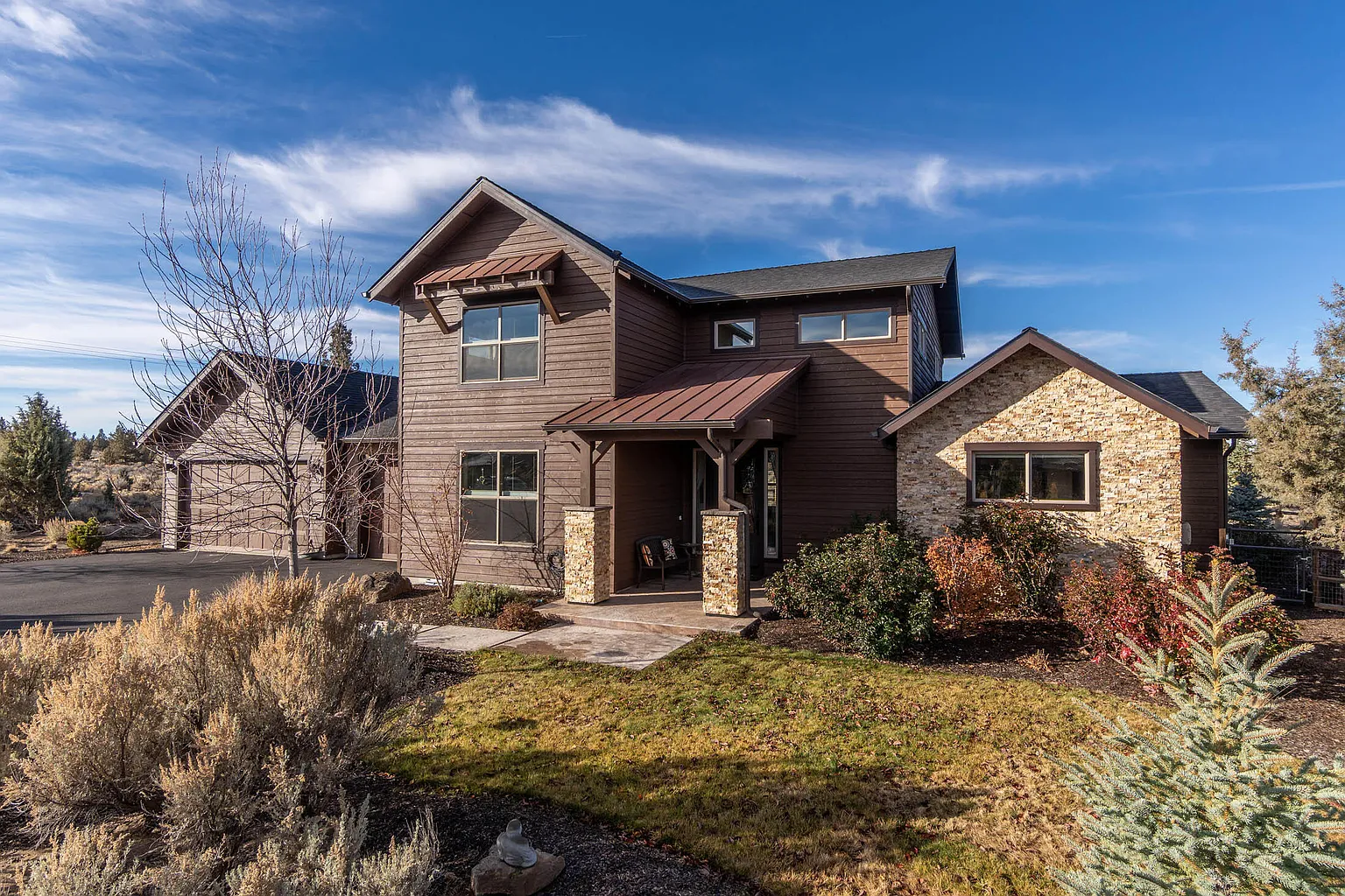 Experience quiet high-desert living in this welcoming 2-story Brasada Ranch home with 4 bedrooms, 3 baths, bonus room, and a 3-car garage. Set back from the road, it offers privacy and beautiful mountain views. The primary suite on the main level provides easy living, while the thoughtful floor plan offers excellent separation of spaces, ideal for family, guests or gatherings. Recent updates include new exterior paint (Fall 2025), epoxy coated garage floors, and a fully fenced backyard that backs to BLM land for open space and uninterrupted natural surroundings. As a Brasada Ranch resident, enjoy access to award-winning year-round golf, equestrian facility, pickleball, fitness classes, four pools, and a vibrant social community.