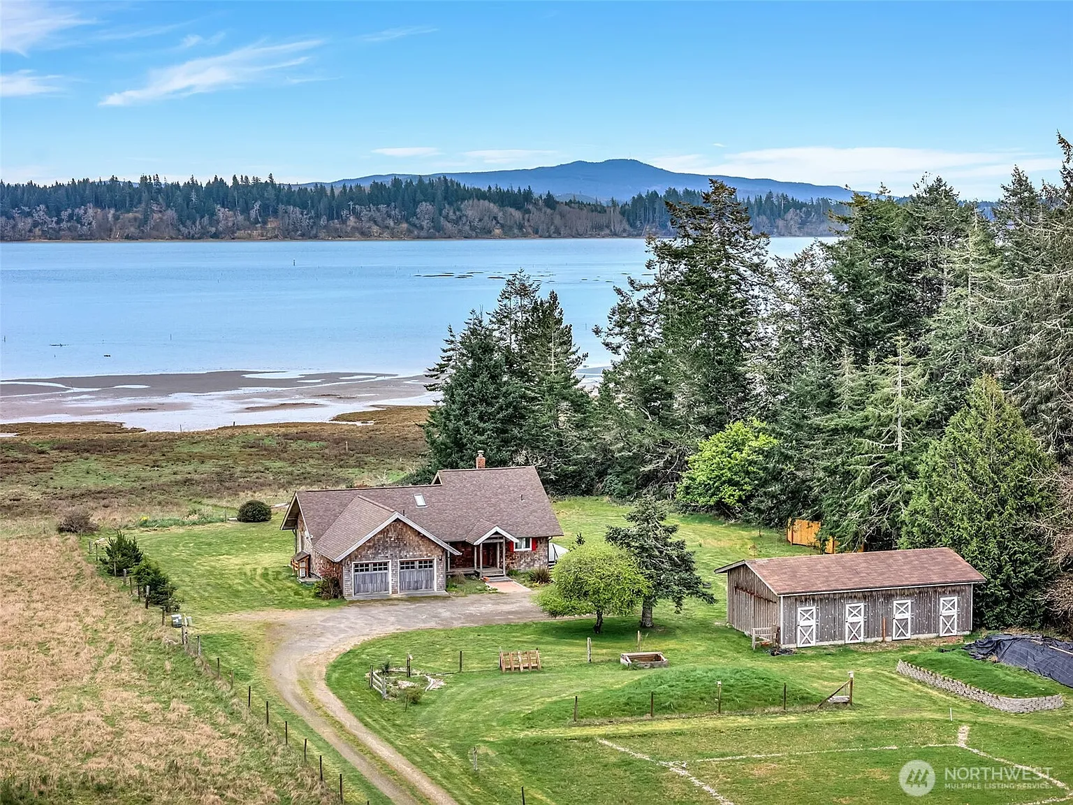 Sweeping views of Willapa Bay, Nahcotta, and Long Island set the backdrop for this private coastal retreat on over 3 acres. Set back from the road with a long driveway through open pasture, the property offers a rare combination of space, privacy, and expansive scenery. Custom built by Mack Brothers, the 2,337 sq ft home showcases warm wood accents, vaulted ceilings, and a light-filled layout designed to capture the surrounding landscape. The main living area features large windows and a lofted bonus space above, creating an open and airy feel.The kitchen retains its original character with solid wood cabinetry and generous workspace, ready for personalization. The wood-burning fireplace add comfort and charm, while the layout provides flexibility for everyday living or weekend escapes. The grounds are fully usable for most anyone looking to enjoy the outdoors. Kayak right from your backyard in the Willapa Bay, and enjoy the property featuring Trees, shrubs, wildflowers and native grasses which have been planted nearly continuously on the property - to embrace the coastal vegetation. A level pasture, partial fencing, and a barn/stable setup—ideal for animals, hobbies, or additional storage. This peaceful setting is just minutes from Ocean Park’s ameneties, Historic Oysterville and beach access. This is a unique opportunity to own property on the Willapa Bay with acreage, versatility, and timeless coastal appeal.