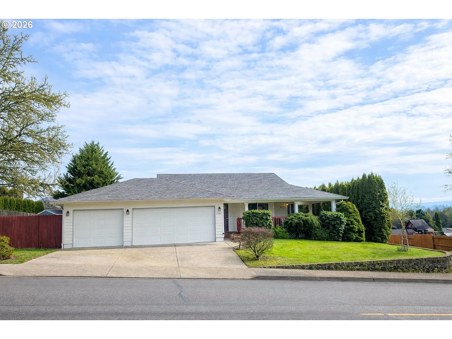 Rare one-level view home in the highly sought-after Southview Heights community of La Center! Built in 1995, this 1,545 sq ft, 3-bedroom, 2-bath home offers sweeping views of the Lewis River Valley and an open, light-filled layout designed for comfortable living and effortless entertaining.Huge picture windows frame the stunning scenery, while a sliding glass door off the dining room leads to an expansive wrap-around deck — the perfect place to host gatherings or simply unwind and watch the sunsets. A separate private deck offers a peaceful retreat for quiet evenings.Inside, you'll find gleaming laminate floors, an open floor plan, a cozy gas fireplace, ceiling fans, and central air conditioning for year-round comfort. The fully landscaped .21-acre lot features an outdoor sprinkler system, garden area, dog run, and tool shed — offering both beauty and functionality.The spacious 3-car garage provides ample storage and parking. All this just minutes from the freeway for easy commuting, yet tucked into one of La Center’s most popular neighborhoods.View homes like this — especially single-level — rarely come available. Don’t miss it !