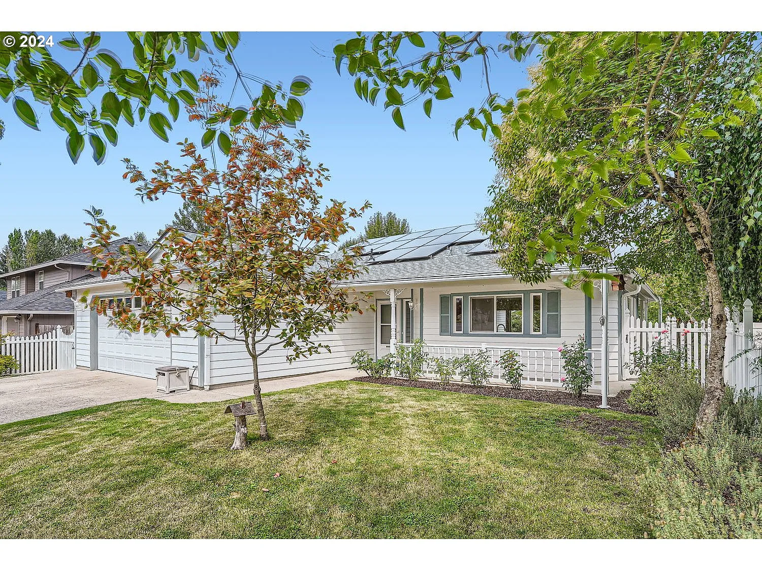 Discover this meticulously maintained and updated single-level gem, nestled in the sought-after La Center community. Perfectly situated backing to Heritage green space and just half a block from Southview Heights Park, this home offers both tranquility and convenience. Step inside to find a thoughtfully designed floor plan featuring a spacious great room with vaulted ceilings and new luxury vinyl plank flooring. The inviting living area boasts a gas fireplace and picture windows with views to the back yard and green space. The custom remodeled kitchen is a highlight, featuring elegant granite slab countertops, modern cabinetry, and updated appliances. The large island provides ample space for meal preparation and gatherings. This home is designed with efficiency and comfort in mind. Recent upgrades include new owned (paid off) solar panels installed in November 2023. Awesome energy savings for new owners! Additionaly a new heat pump with A/C installed for year-round climate control plus a newer 50-year roof recently installed along with covered gutters. Additionally, a backup natural gas generator ensures warmth and power during winter outages. Accessibility is a key feature, with a ramp from the garage and some widened doorways for ease of movement. Enjoy outdoor living on the back deck, complete with an electric awning, or relax on the covered back patio or front patio. The well-cared-for yard is a gardener’s delight, featuring mature landscaping, fully fenced, a lower garden space, and a handy tool shed. Clean, updated, and move-in ready, this home radiates warmth and comfort. Don’t miss your chance to experience its charm—schedule your private viewing today!