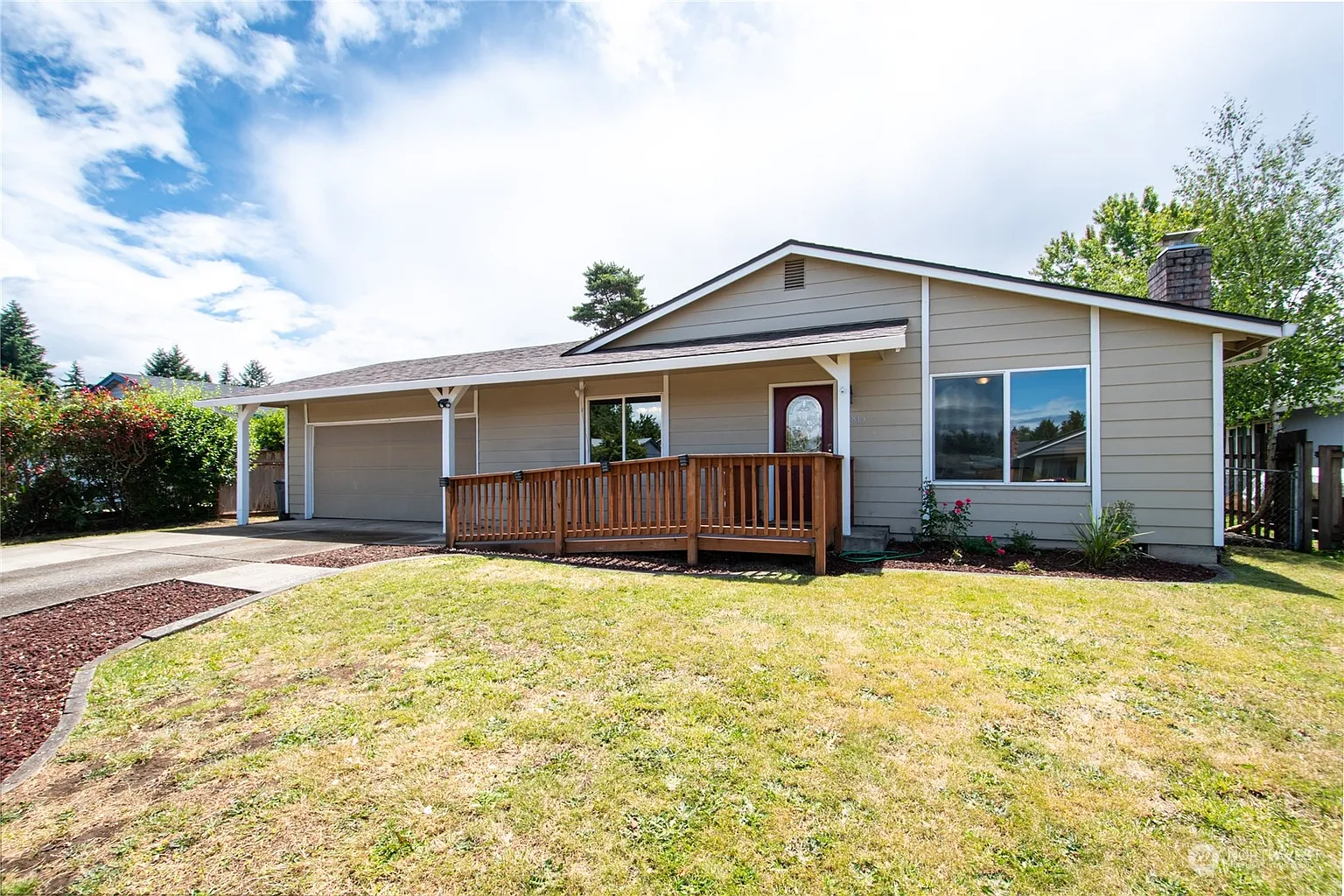 Make offer! Super cute 4 bedroom, 2 baths with freshly painted interior ready for your move in. Awesome kitchen is light and bright with huge window + eating area plus all the appliances stay including the washer/dryer! Cozy living room with a real wood-burning fireplace. Newer, Gorgeous beachy Vinyl flooring. Ramp for seniors and interior grab bars as home was a care facility in the past DSHS approved. Door to the back yard is through the garage and it is a huge one, completely fenced and ready for summer fun. Great news: Roof is 7 years new!