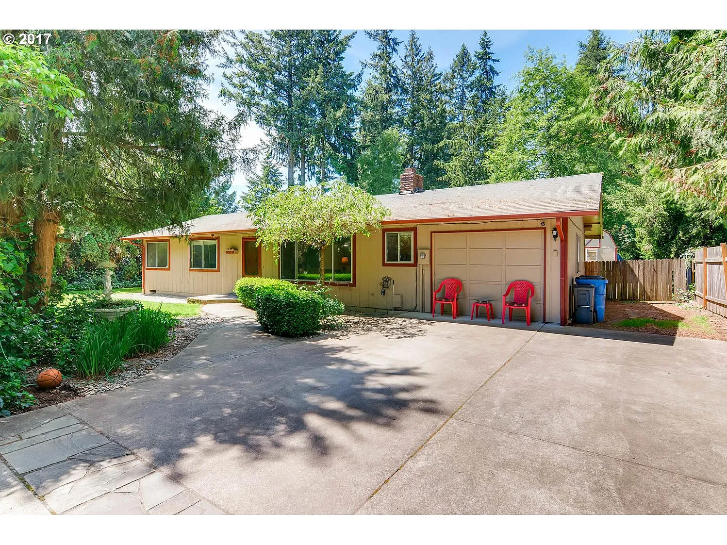 Ranch style home down private driveway w large backyard & covered patio! Finished garage not included in sq ft, can be used for additional bedroom/bonus room. New gutters, fresh paint inside & out, shed, small extra room great for office. Seller started process of waterfall feature off back patio, can be easily finished or perfect for fire pit area. Start of half bath in laundry room, toilet and sink included. Home sold as-is.