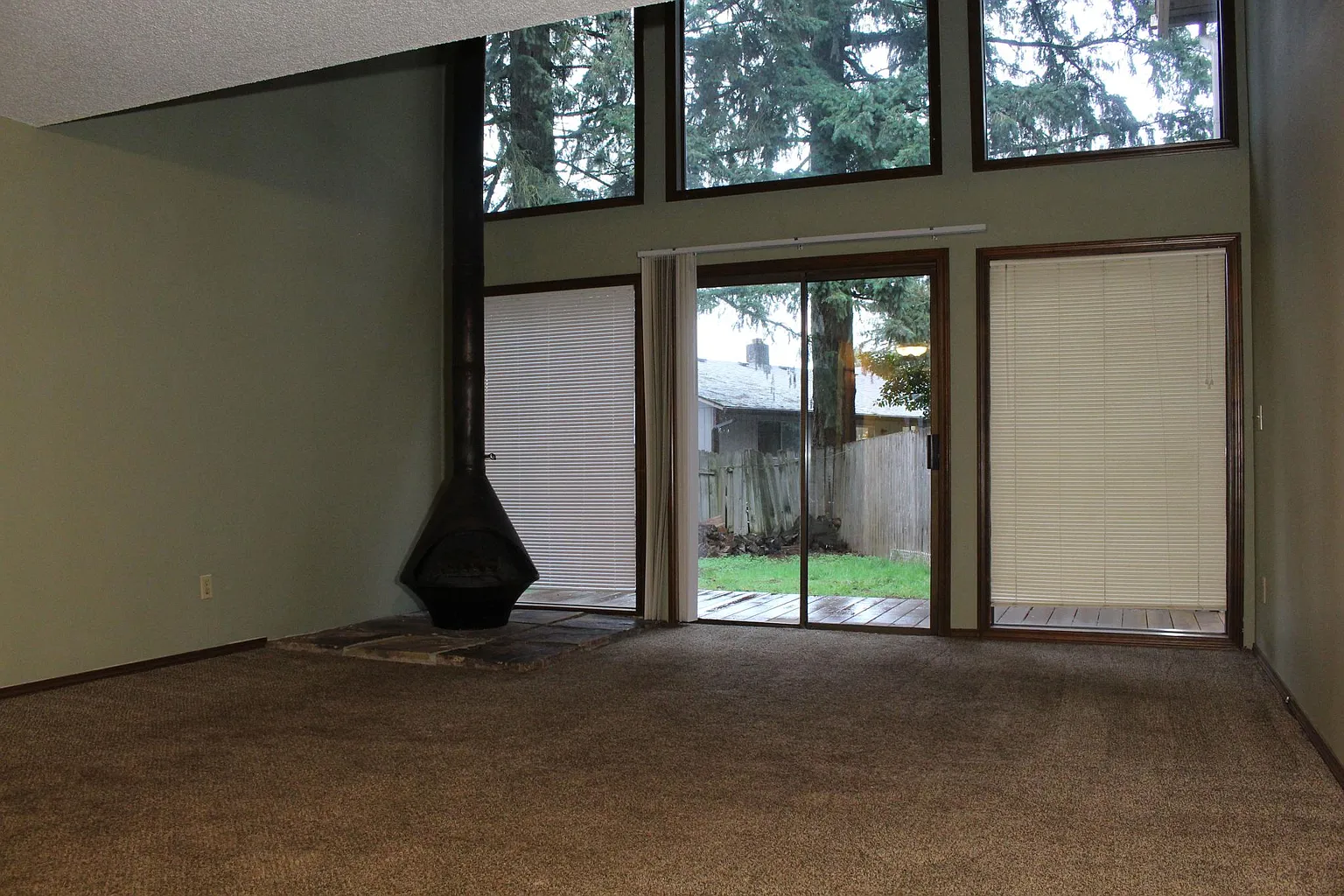 2 bedroom, 1.5 bath townhouse located in Hearthwood Neighborhood. 1 bedroom is loft. High vaulted ceiling, wood stove, washer/dryer hookups in downstairs utility room. No Pets. Water & sewer included, covered carport. Rent $1275. Deposit $1275. Application fee $50 Owner pays for water & sewer.
