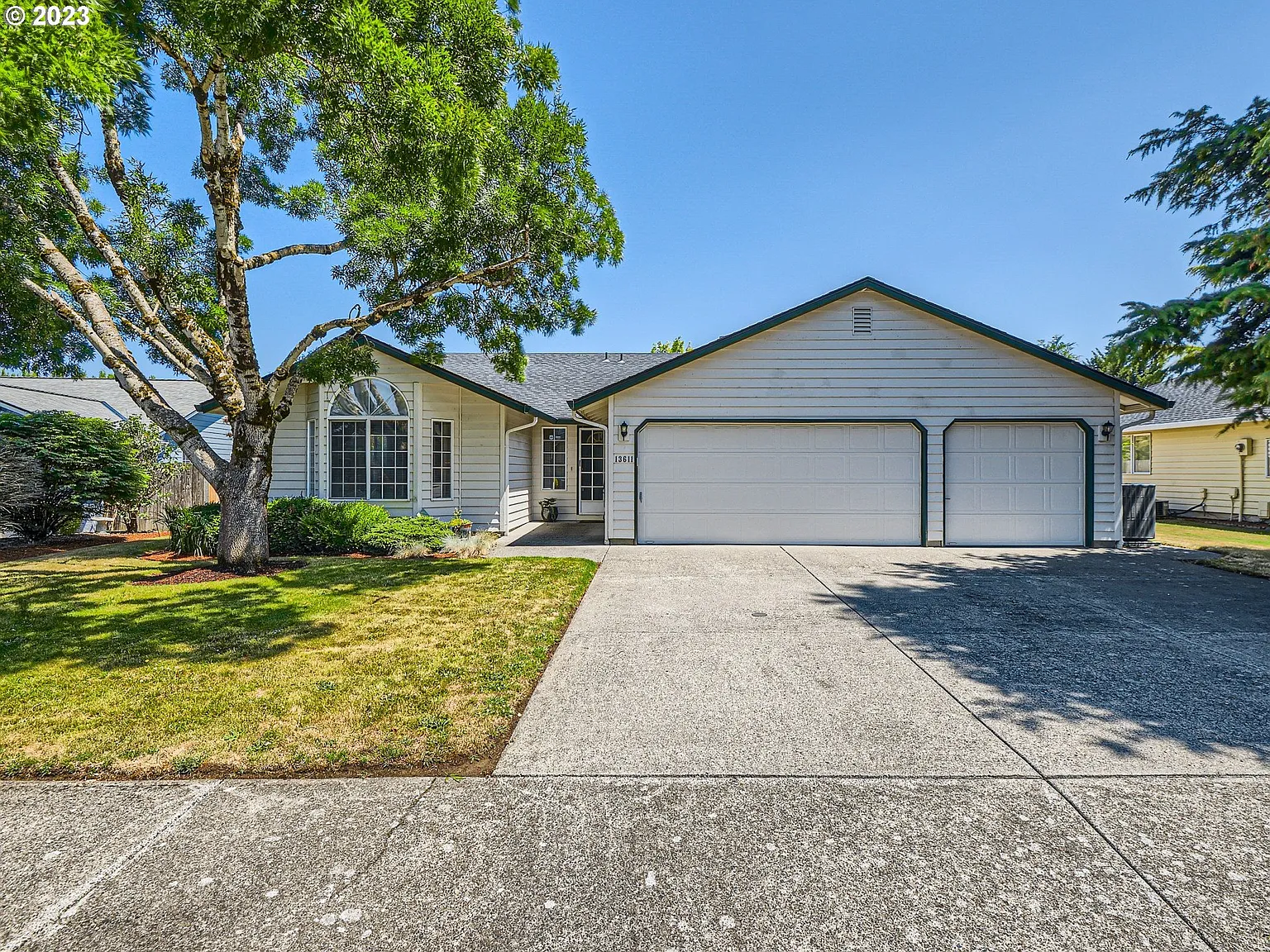 Welcome to this inviting one-level home located in the desirable Salmon Creek neighborhood. This home has an optimal floor plan with the kitchen located between the living/dining room and family room. Relax by the cozy fireplace in the family room with slider to back patio. Additionally, the laundry room is adjacent to the kitchen and has built-in cupboards and sink, perfectly located for multi-tasking. Large primary suite with double sinks in private bathroom. Three car attached garage is a wonderful bonus to this home. Stay cool this summer with the newly installed central air-condition. Large fenced backyard with garden boxes. Quality constructed home with cedar siding. All conveniently located near parks, shopping and easy access to freeways. Offer recieved. Don't wait, come see this great home!