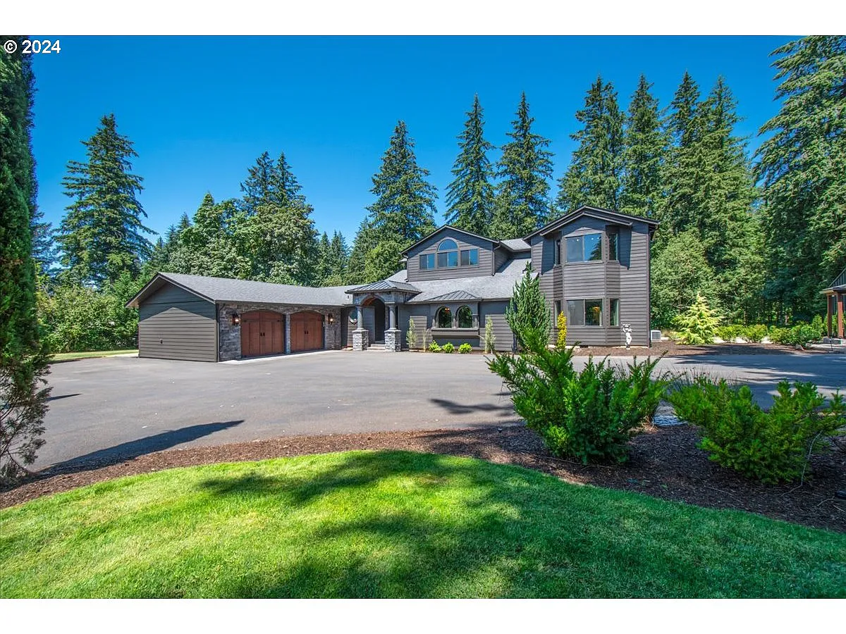 Spacious lodge style masterpiece in a private parklike setting in desirable, close-in Fern Prairie. Wake up to relaxing quiet country living in this spacious 4652 SF Camas family home on 5 level treed acres just minutes to downtown Camas or Washougal. An elegant entry/foyer welcomes guests and sets the theme for the thoughtful design and endless quality features you will find throughout the home. The open kitchen great-room area is rich and comfy overlooking the inviting rear patio surrounded in tall firs and peaceful groomed landscaping. Exquisite primary bedroom suite has sitting area and fireplace. Ensuite features classic soaking tub, glass shower and large walk-in closet. There is a second main floor full guest suite. Five bedrooms in all and four baths, huge media room, workout room, office, built-in surround sound, security system, four zoned sprinkler systems, four-bay detached garage plus a detached woodshop. Paved driveways, Comcast internet, private water well and PD septic system.