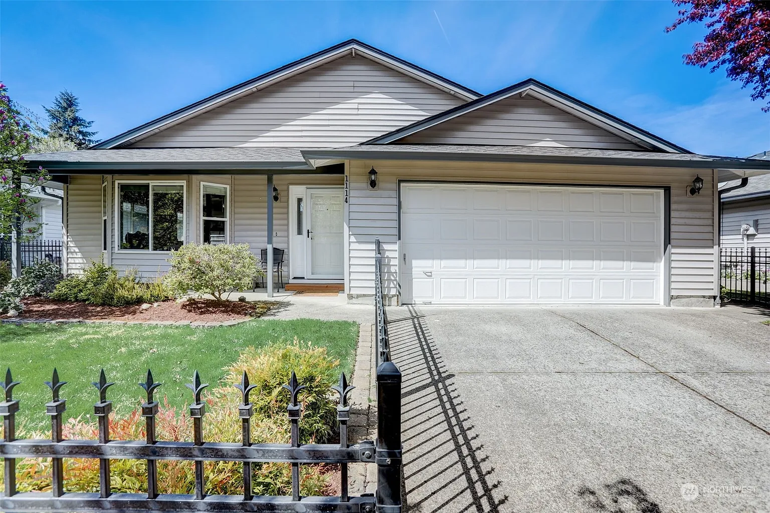 Nestled in a serene neighborood, this charming 1-level home offers a tranquil retreat. Step inside to find a bright living space adorned with vaulted ceilings, ceiling fan, & wall to wall carpet creating an inviting atmosphere. The well-appointed kitchen features Granite counter, breakfast bar, skylight for extra light, ideal for casual dining all while overlooking the vaulted LR w/ F/P. Retreat to the spacious prim suite w/ private bath, soaking tub, & W/I closet. A perfect place to be at the end of a hard day. 2 additional bdrms offer flexibility for guests. Outside, enjoy a covered patio w/ fenced, private yard for outdoor gatherings. Attached garage, efficient heating, & proximity to amenities, this home provides it all.