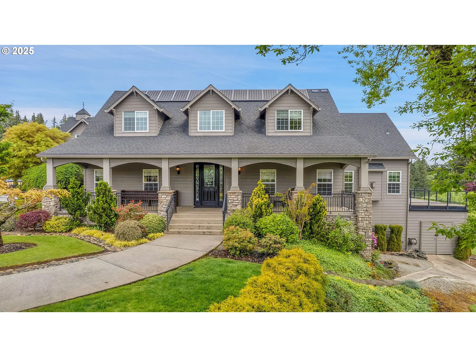 Experience the pinnacle of Pacific Northwest living in this magnificent custom craftsman home, situated within the prestigious estate neighborhood of Rolling Hills in Ridgefield, Washington. Spanning over 6000 square feet, this exceptional residence offers an unparalleled blend of architectural elegance and serene privacy on a sprawling, manicured six-acre estate.Step inside and be captivated by soaring ceilings that amplify the sense of space and light throughout. Exquisite custom woodwork details add a touch of timeless artistry to every room. This thoughtfully designed home boasts not just one, but two luxurious owner's suites, one on each level, offering flexibility and unparalleled comfort. Additionally, a private guest room with its own exterior entrance ensures exceptional convenience and privacy for visitors.The heart of the home is a chef-inspired kitchen, featuring upper-end appliances, sleek granite countertops, and custom cabinetry that offers both beauty and functionality. Elegant travertine floors flow seamlessly into the main level living areas, creating an inviting space for gatherings. From the dining area, step out onto a wonderful, covered patio, perfect for al fresco dining and enjoying the tranquility of your private surroundings.Outside, the meticulously maintained six-acre grounds are a true oasis. Imagine strolling through manicured lawns, surrounded by endless vibrant flowerbeds bursting with color, and enjoying the taste of fresh fruit from your own mature fruit trees. This incredibly private setting is further enhanced by breathtaking territorial and mountain views, offering a stunning backdrop to your everyday life.