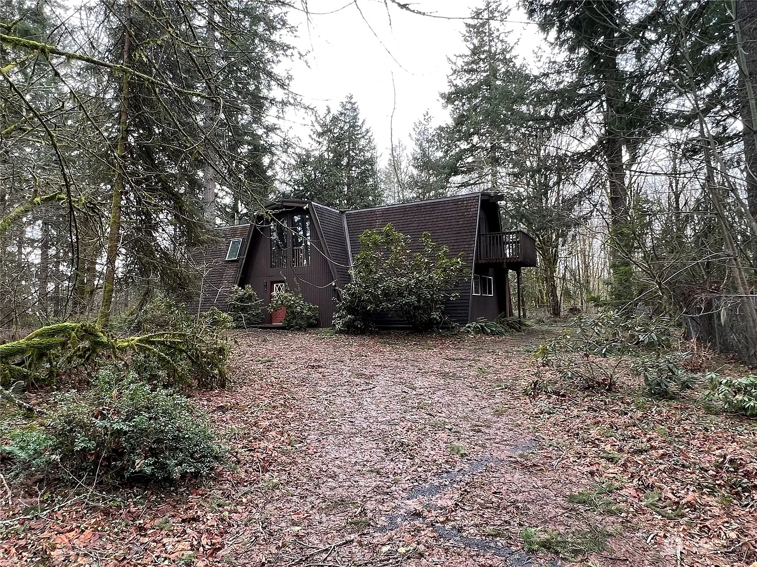 Rustic A-frame located in desirable Beaver Brook community on 5.95 acres!! Great floor plan features a cozy living room with soaring ceilings and large windows, allowing a lot of natural light in. Pellet stove for those cold, winter days. Open kitchen with eat-in bar top. Two bedrooms on main level. Upstairs primary suite with double closets, private bathroom with stand up shower and deck overlooking the property. Spacious loft area offers many possibilities. Interior laundry room. Enclosed patio/storage area. Huge outbuilding has garage parking with workshop and large covered area. Lovely setting amongst the trees for added privacy and seclusion!!