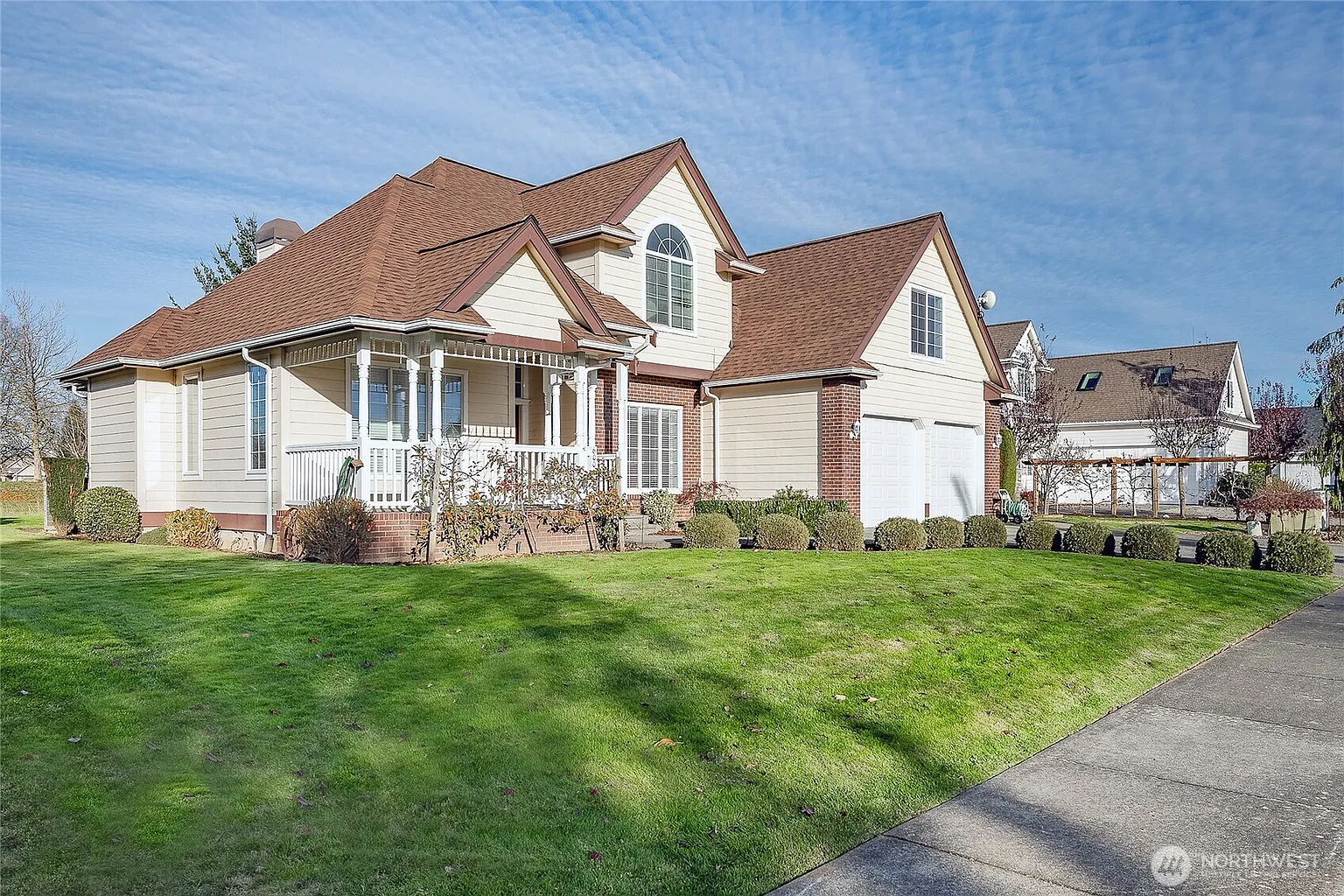 This inviting 2,589 sq ft Lynden home offers 4 bedrooms, a bonus room, and 2.5 baths on a generous 10,019 sq ft lot along the golf course. Hardwood floors, vaulted ceilings, air conditioning, and a main-floor primary bedroom create a comfortable and practical layout. The beautiful kitchen features deluxe cabinets and beautiful quartz countertops, making it a welcoming gathering space. The formal dining room can serve as either a family room or a dining room, offering flexible living options. Additional features include a central vacuum, sprinkler system, and a 2-car garage. With its peaceful setting, covered front porch, and thoughtful design, this home is easy to call home.