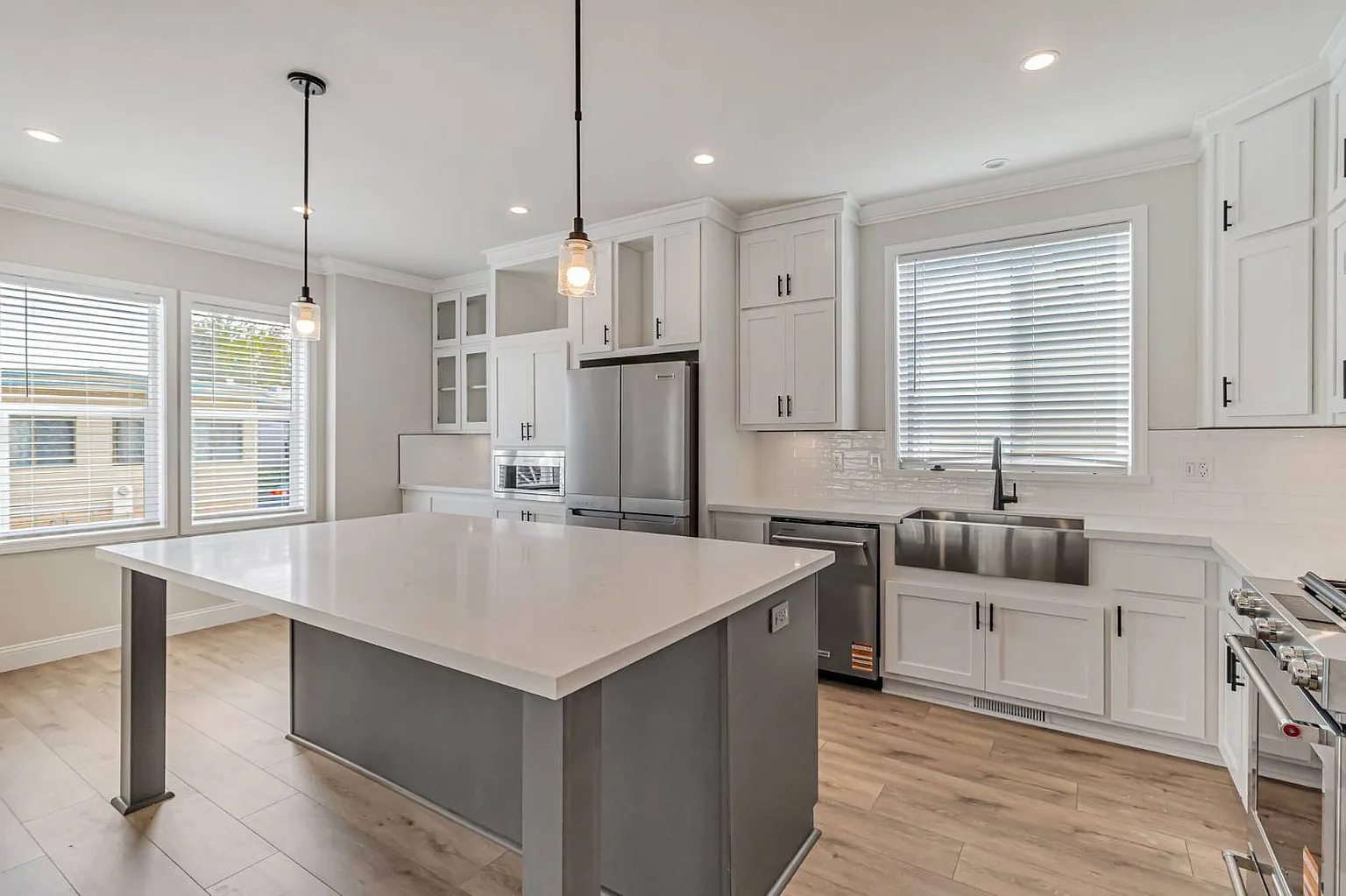 Located in the popular senior 55+ community of New Frontier, this brand-new 3-bedroom, 2-bathroom home offers a flexible floor plan designed for modern living. The spacious living room flows seamlessly into the open kitchen, which features white cabinetry, sleek countertops, and stainless steel appliances. Elegant tray ceilings with a ceiling fan, laminate flooring, and large windows create a bright and inviting atmosphere throughout. The primary ensuite includes a large walk-in closet, dual sinks, a relaxing platform tub, and a separate shower. Two additional bedrooms provide ample space for guests, an office, or hobbies. Conveniently located just off Central Expressway, this home is within 10 minutes of downtown Mountain View and Bayshore Sunnyvale Golf Course. The area offers a variety of nearby amenities including coffee shops, restaurants, and entertainment options. Call today for more information! This is a manufactured home on leased land (not real estate); the land lease is $1,695 per month. 2025 Skyline Serial #: 23700PHA002189A/B HCD #: DL1164796 *Images shown are of a similar home. Actual home may vary in color schemes, features, dimensions, and layout. *List price excludes closing costs & escrow fees. *All information provided is deemed reliable, but is not guaranteed.