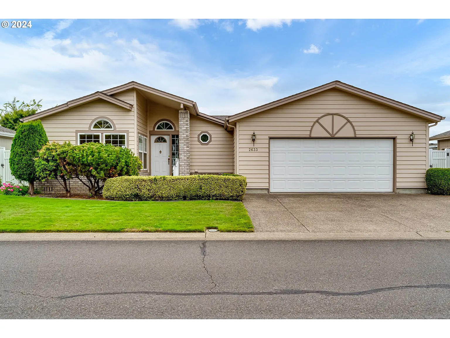 Beautiful, light filled home located in the desirable Gainsborough 55+ park. Featuring new luxury vinyl plank flooring and interior paint, spacious living room with vaulted ceilings, gas fireplace, arched doorways, formal dining room and an abundance of windows throughout. Large kitchen with walk-in pantry, Corian counters, built-in microwave and a charming breakfast nook. Separate utility room with sink and oversized 2 car garage with shop. Sliding doors off living room lead to a fully fenced yard with patio, covered deck and beautiful landscaping, creating an inviting outdoor space perfect for entertaining. Don't miss this special property!