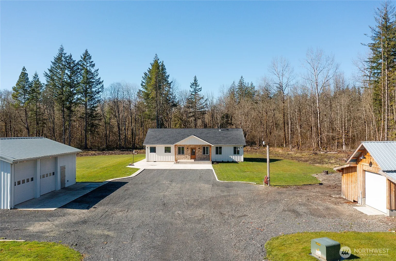 Built in 2024, this custom built home sits on 5 acres and is ready for your final touches. Inside you'll find an open-concept design and abundant natural light. This home also offers two living rooms for entertainment. Equipped with 3 beds and 2 full baths makes it an ideal floorpan. Crackling wood stove for the cozy winter and mini-ductless heat pumps in each room for A/C and energy efficient heat. Private back covered patio is ready for summer evenings on the grill and watching the wildlife share your land. Head out to the 36x24 shop where you will find a full bathroom plus a cedar sauna. Shop is also heated with a ductless mini-spit. Out front you'll find a stunning Mount Saint Helens view! Don’t miss this newly built, country gem!
