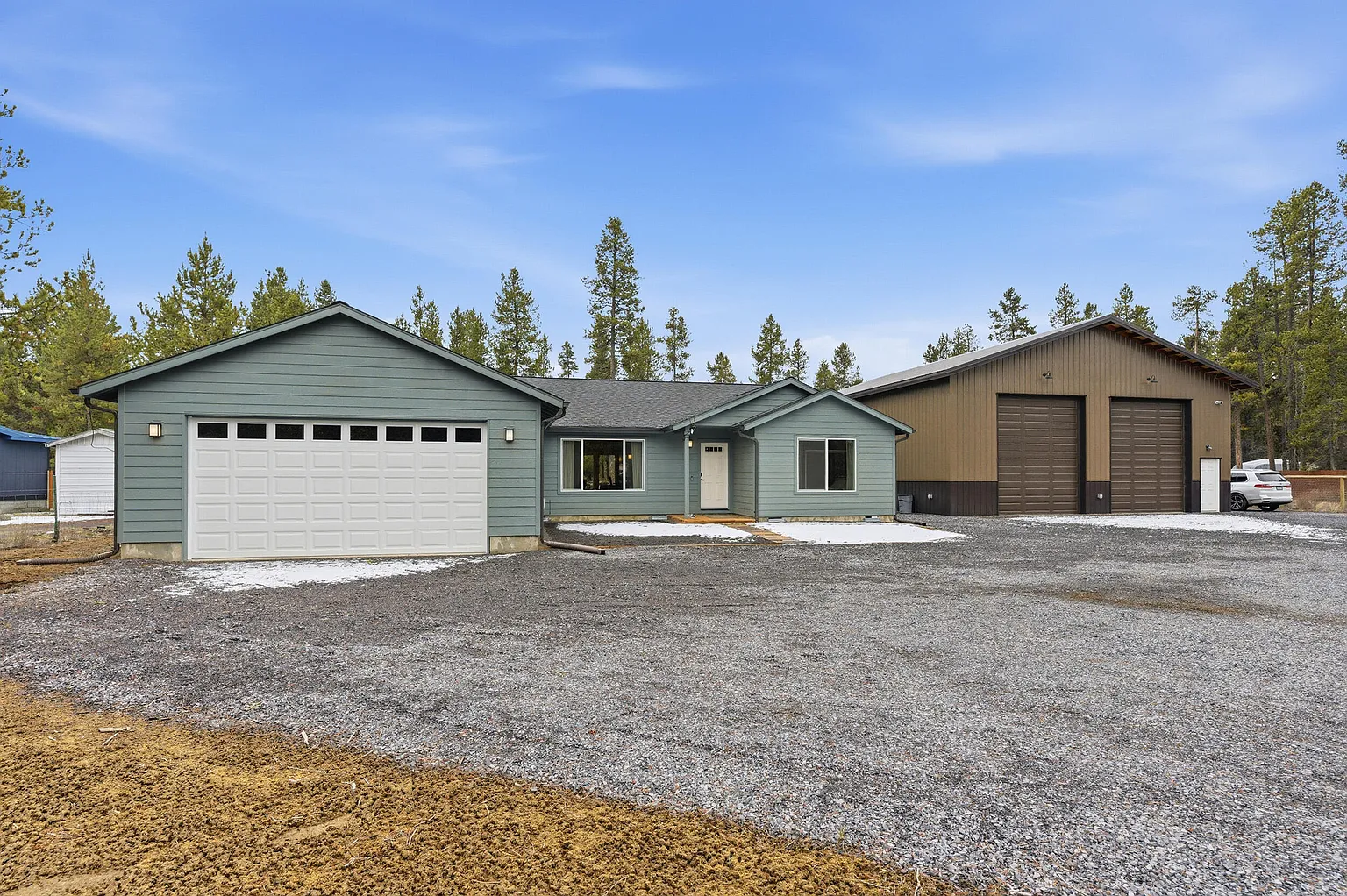 Come check out this beautiful HiLine home completed in 2025! This never-lived-in 3-bed, 2-bath, 1,721 sq ft home sits on a 1.02 acre corner lot in the DRRH area on the North side of La Pine. The property is fenced, gated, landscaped, and includes two driveways. Home highlights: upgraded foundation with crawlspace, luxury vinyl floors throughout, open floor plan with split living, extra-large 3-door panel slider, upgraded cabinets, quartz countertops, forced air heating with AC, smart lock, and doorbell. Insulated garage with dog wash station (hot/cold water), 8' doors, extended length covered back patio includes gutters with rain chains, Christmas light outlets, and heat cable with smart outlets on the roof. Awesome heated, & insulated 2000 sf 40'x48' shop with 14' pull-through double doors in both bays, 30 & 50 amp in both bays, water and sewer hookup in one bay, exterior flood lights with cameras. Garage doors in the shop are wired for remotes. Close to La Pine State Park!