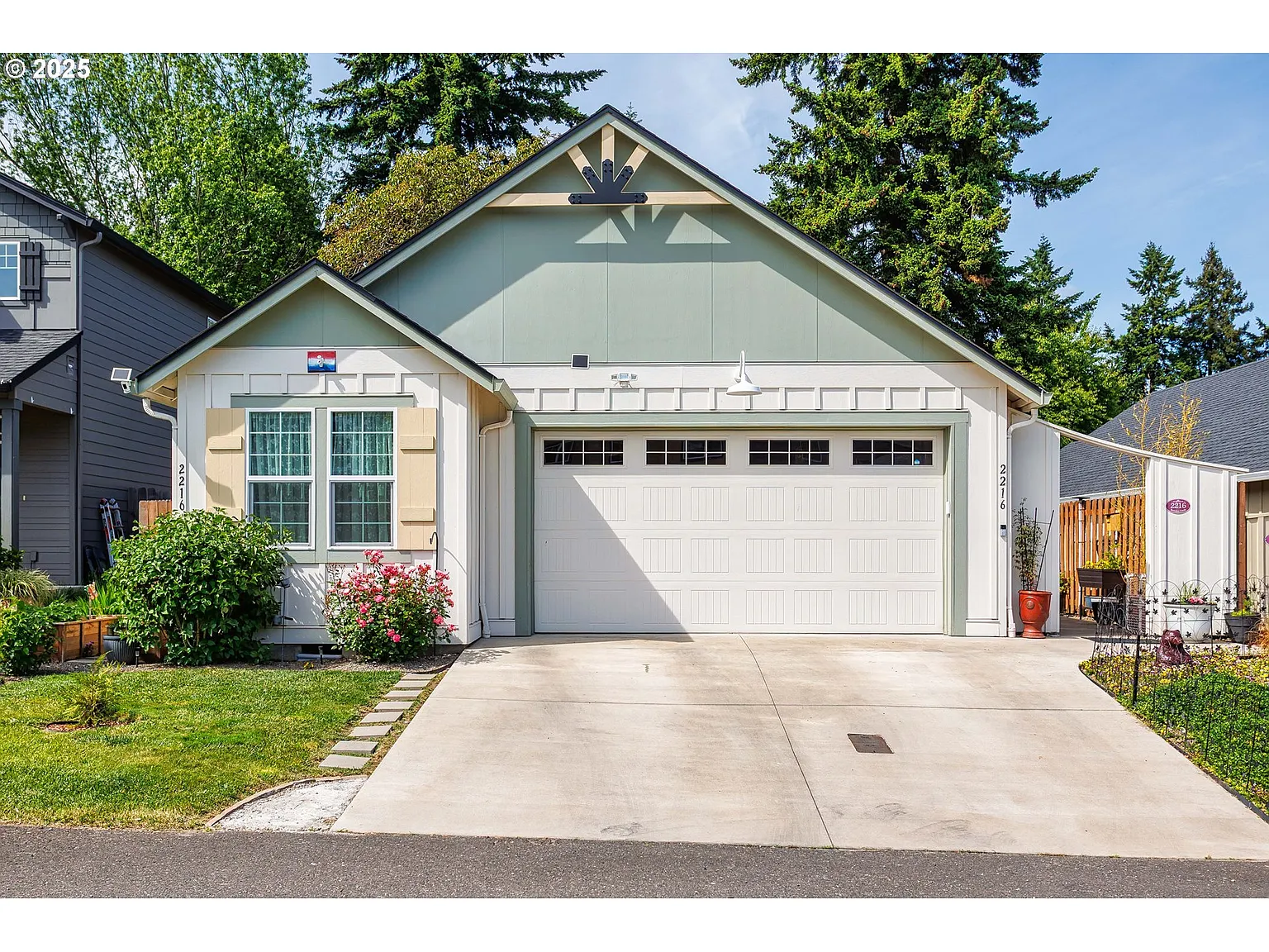 Charming and tucked away, this single-level cottage-style home sits on a quiet cul-de-sac and looks straight out of a storybook. Just five years old, it blends timeless character with modern comforts—featuring board and batten siding, a private courtyard entry, and an extended covered back patio with no rear neighbors.Inside, you’ll find 9’ ceilings, quartz countertops, premium cabinetry, a built-in pantry, stainless steel appliances, a gas range, and a cozy gas fireplace. The open layout is bright and welcoming, perfect for entertaining or everyday comfort. The spacious primary suite includes an 84” double vanity with marble counters, a walk-in closet with a window, and a therapeutic step-in soaking tub. Accessibility is top of mind—no steps throughout, wide walkways, and easy-flow design. High-efficiency systems include tankless water heater, gas furnace, A/C, and irrigation. Fully fenced yard backs to trees for added privacy. Enjoy the peaceful community common area nearby, ideal for gatherings or relaxing.