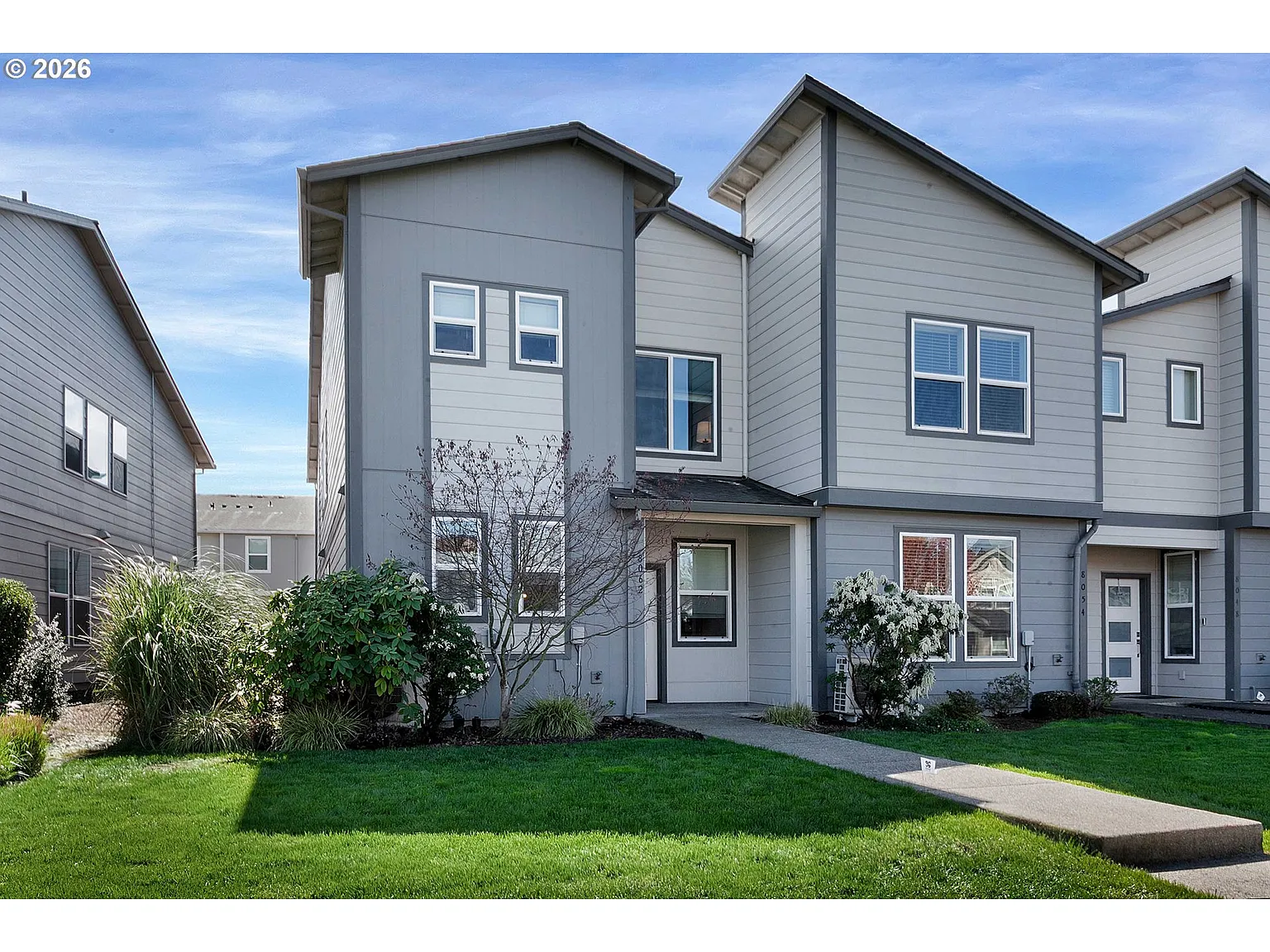 Butternut Creek End-Unit Townhome in South Hillsboro, why pay new construction prices when the upgrades are already done? This well-maintained 3-bed, 2.1-bath home (1,633 SF) built in 2019 shows like new. The open main level features a kitchen with gas appliances and quartz countertops, a stylish electric fireplace, and heat pump mini-split. Upstairs offers a versatile loft perfect as a second living space or home office, plus a primary ensuite with dual sinks. The 6kW solar panels installed in 2022 are paid off at closing, with a hardwired EV charger in the rear garage — that $16 monthly electric bill covers charging the car and running the AC. On-street guest parking adds everyday convenience. Butternut Creek Park and a fenced dog park are just around the corner, and the South Hillsboro walking trail connects you directly to all the new shops and restaurants. Includes a 1-year APHW home warranty. All the features you want in new construction, already installed, already proven, priced to win.