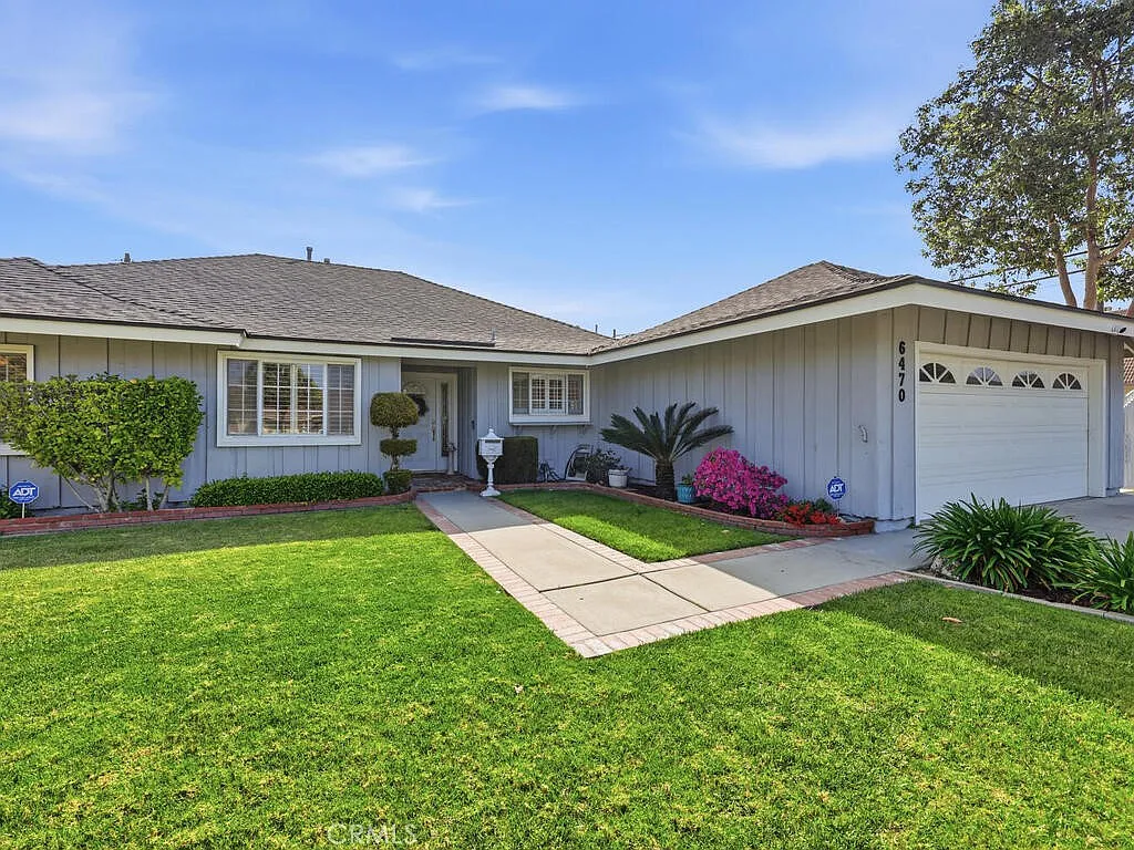 Welcome to this beautifully maintained home nestled in the highly desirable Composers Tract of Buena Park. Situated at the end of a quiet cul-de-sac, 6470 Brahms Circle offers the perfect blend of comfort, convenience, and classic Southern California living. Boasting excellent curb appeal, this property sits on an oversized 9,375 sq. ft. lot and features an extra-long concrete driveway with ample space for RV or additional parking. Step inside to a bright, open floor plan filled with natural light, creating a warm and inviting atmosphere throughout. A formal entry with a leaded glass door and sidelights opens into a spacious living area that flows seamlessly into the dining space, breakfast bar, and updated kitchen—ideal for both everyday living and entertaining. The home features hardwood flooring in select living areas, recessed lighting, smooth ceilings, and ceiling fans throughout. There are three generously sized bedrooms with mirrored wardrobes, plus a versatile den that can easily be converted into a fourth bedroom. Both bathrooms have been recently renovated with modern finishes. Additional upgrades include dual-pane windows, plantation shutters, custom blinds, an updated kitchen with stylish countertops and backsplash, and abundant storage throughout. Step outside to your private, park-like backyard oasis—complete with a tranquil water feature—perfect for relaxing, gardening, or hosting gatherings. A large side patio offers additional flexibility and could potentially accommodate small recreational vehicles or trailer parking if a 1 car garage door was added at the back of the garage. Additional highlights include an attached garage with a built-in workbench, well-maintained landscaping, and a prime location with convenient access to shopping, dining, entertainment, major freeways, and local schools. Enjoy being just minutes from Knott’s Berry Farm and The Source OC. Don’t miss this exceptional opportunity to own a beautiful home in one of Buena Park’s most sought-after neighborhoods!
