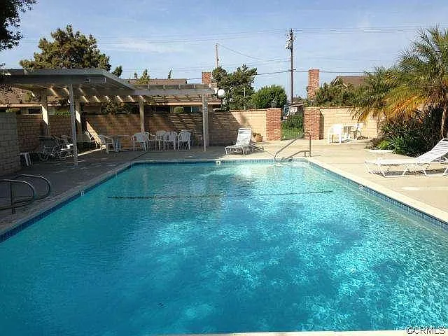You must see this 2 bedroom, 2 bath, ground level end unit that is located in the back of the San Souci complex. There is a separate dining area, living room with a cozy fireplace that opens to a large patio and leads to a detached garage with 2 parking spaces. The beautiful grounds boast lush greenery, association pool, electronic gates and community laundry. Close to shopping, schools, parks and freeways.