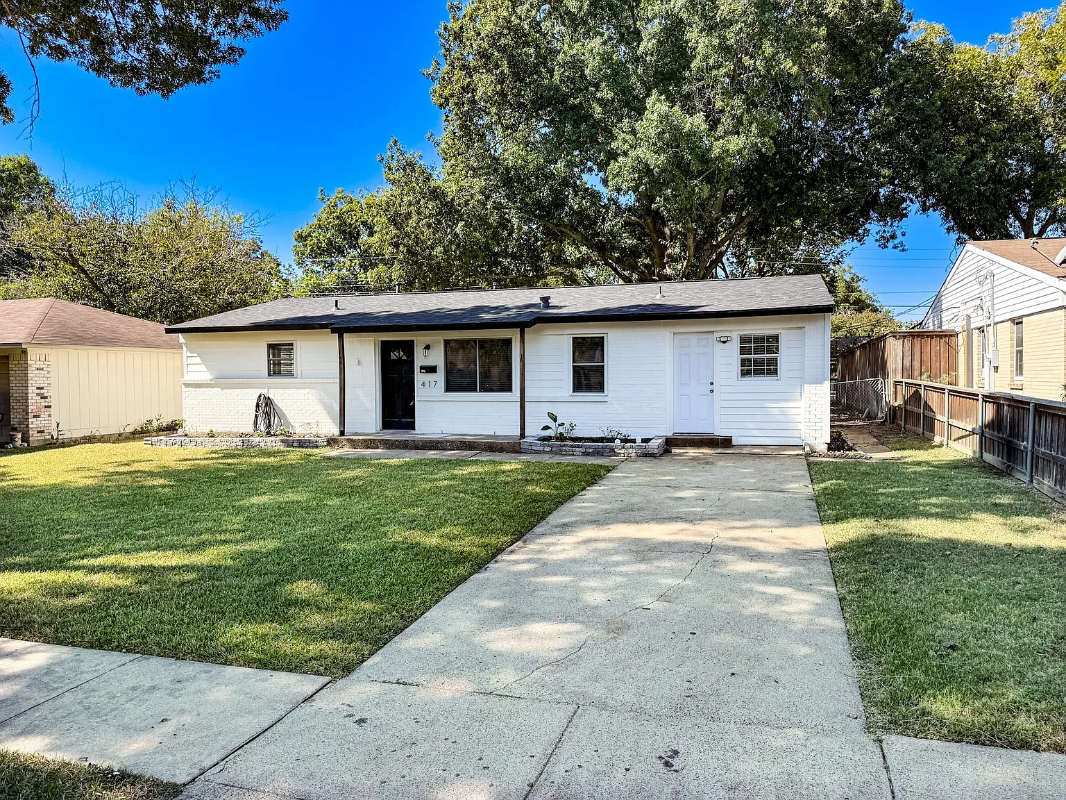Welcome to 417 Birchwood Circle, a move in ready home located in a quiet, established Mesquite neighborhood shaded by mature trees in both the front and back yard. Recently refreshed, the home features a brand new roof and fresh exterior paint, creating a great first impression and setting the stage for the updates found inside. This single story home offers just under 1,400 square feet of comfortable living space with three bedrooms and two full bathrooms. The foundation has been recently repaired, offering added peace of mind. Inside, the primary bedroom and an additional bedroom have been repainted and updated with new flooring, creating a bright and welcoming feel. The galley kitchen is functional and efficient with plenty of cabinet space, making it ideal for everyday living and home cooked meals. The converted garage adds a versatile third bedroom with its own ensuite bathroom and a spacious laundry room. This space also includes a separate private entry, making it a great option for a mother in law suite, guest quarters, or a potential rental room. Outside, the large backyard is a standout feature for the area, offering plenty of room for entertaining, gardening, or relaxing under the shade of mature trees. A storage shed provides extra space for tools and outdoor equipment. With no HOA, a convenient Mesquite location, and thoughtful updates throughout, 417 Birchwood Circle is a wonderful option for first time buyers, downsizers, or anyone looking for a well cared for home with comfort and flexibility.