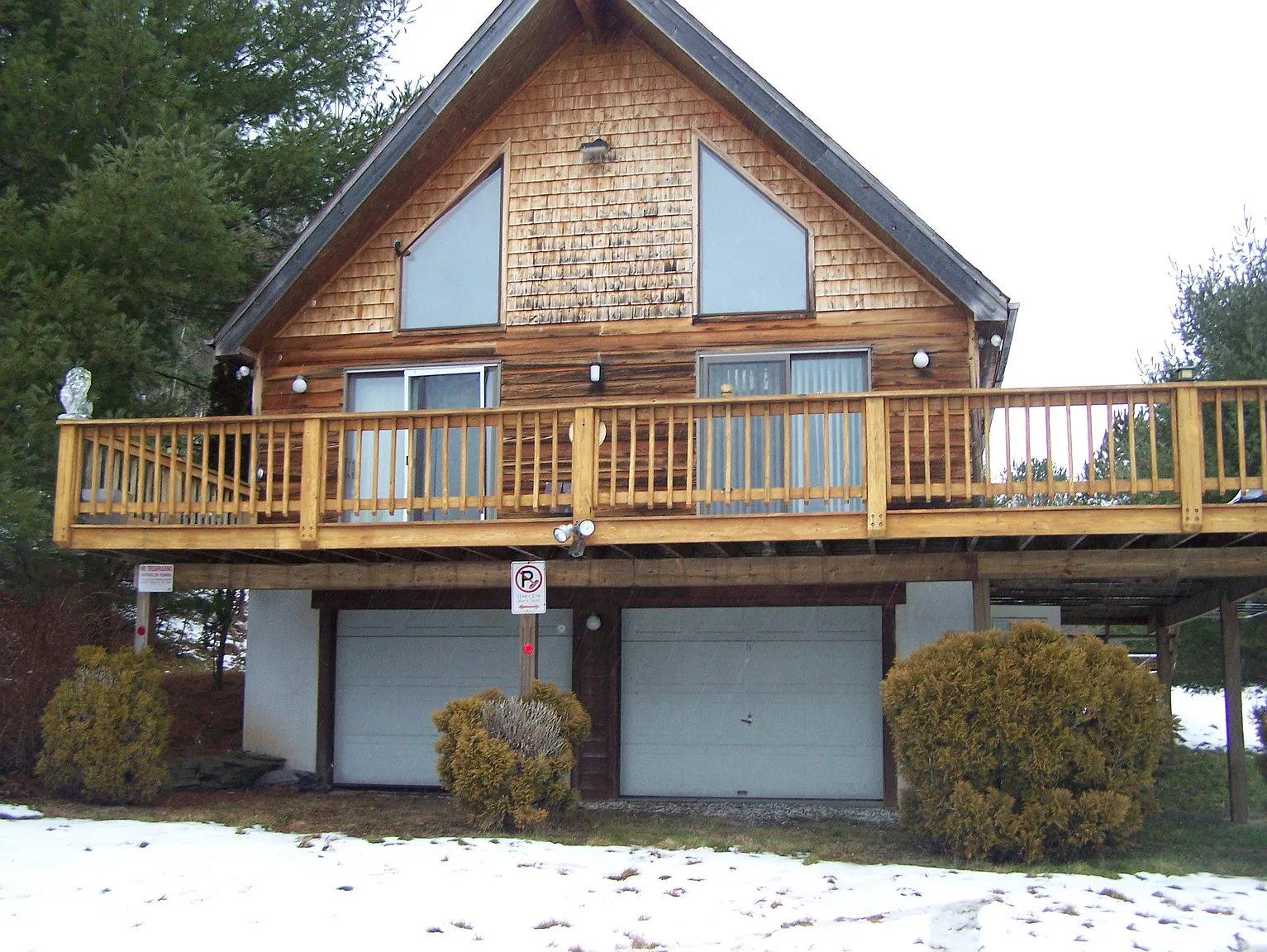 Just 5 minutes to the Pepacton Reservoir for fishing and boating is this privately set Catskills Chalet with Cedar Siding and Soaring Pine Plank Cathedral Ceiling in the Great Room. With over 11 acres to roam in a nicely rustic area this home is a great country retreat with many creature comforts including a finished basement billiard room(Pool Table Included) or den. A comfortable master suite upstairs has a small desk space loft overlooking the Living Room with views out the large Cathedral Glass Windows. The bedroom has its own full bath with skylight and a small private bedroom balcony. 3 Bedrooms on the main floor provide lots of room for family and friends and everyone can gather around the woodstove (pellet) in the greatroom or out two gliding doors onto the expansive decks wrapping the house. Two nice ponds add water features and wildlife habitat in the large front lawn and the hillside terrain above the house offer hiking and hunting lands. A basement garage gives you all weather access and convenience. A dog kennel, and garden shed are right behind the house.