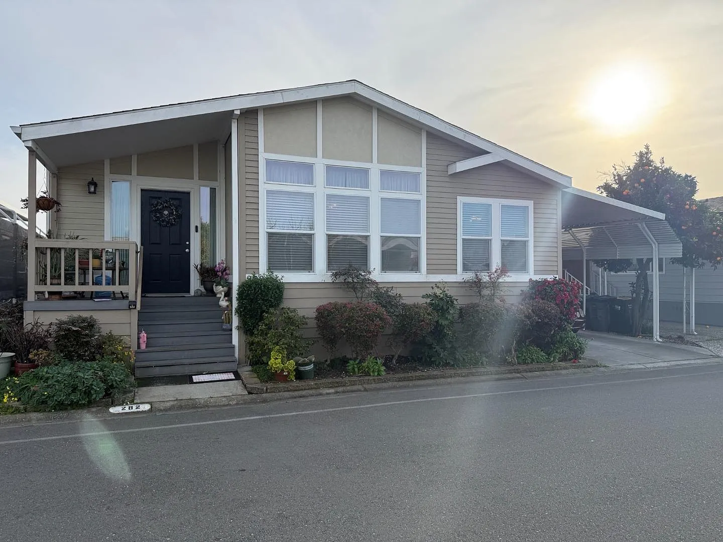 This beautiful well-kept Palm Harbor 2003 triple wide home includes 3 bedroom's + Den, and 2 bathrooms that provides spacious living! The kitchen includes appliances such as refrigerator, dishwasher, and oven range. The kitchen includes an open skylight, and spacious cabinets. Above the range, includes nice 3-tier spice rack, perfect for your cooking! A beautiful breakfast nook is included with a chandelier on top, adding comfort and style. The laundry room includes a washer and a dryer. Inside the living room, it has a 3-tier skylight with ceiling fans included, and large windows, adding natural lighting to brighten this home. There is a separate dining area that includes large windows and a chandelier. Opening double doors into the master bedroom that includes two side by side closets, that welcomes coziness and comfort. The master bedroom also leads you straight into the laundry room providing easy access to the outside door. Inside the master bathroom, it has double sinks with a sunken tub surrounded by tiles, tile floors, and a walk-in shower. The den is a perfect space for an office or a playroom! Outside we meet the carport, where it includes an awning extension that provides additional shade to your car. There is one large shed included. This park has so many amenities!
