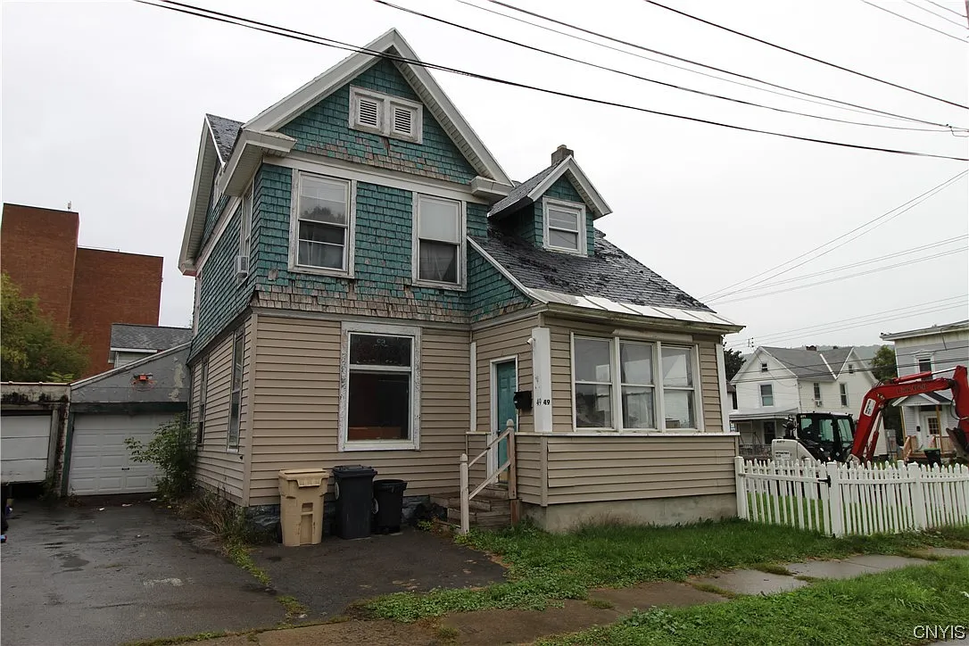 Welcome to 49 Catherine st. This home features 4 bedroom and 2 full baths and 1st floor laundry room. High ceilings and hardwood floors and large rooms and even an enclosed front porch. With a few updates and some painting you can have a nice solid house. Located on a corner lot with small fenced yard. Newer hot water heater some vinyl windows. Driveways located on catherine st and E North st. The wodstove and appliances convey with the sale. Property being sold as is. Sellers not removing anything from the property.