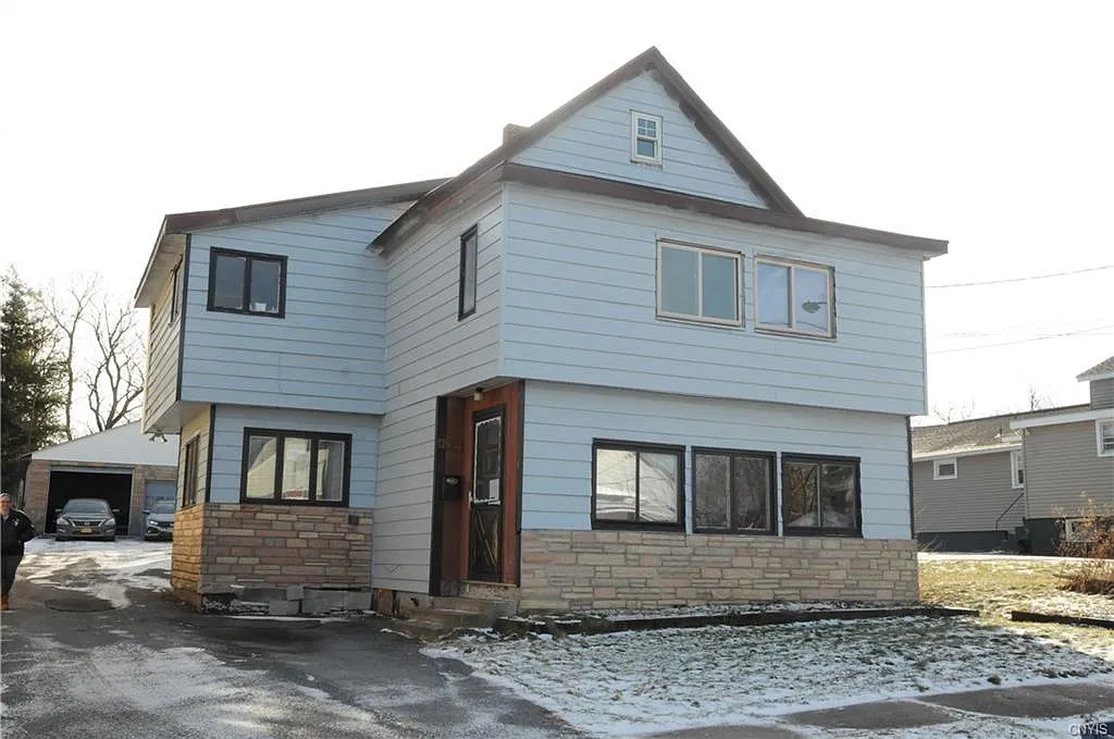 SOLD AS IS. Needs some love and care but otherwise a solid 3 unit home. HUGE 3 stall heated garage with a yard out back to relax in. Separate electric, common laundry with additional hookup in basement. New Boiler, new HW heater. Great investment property or live in one and rent the other two. Taxes to be verified