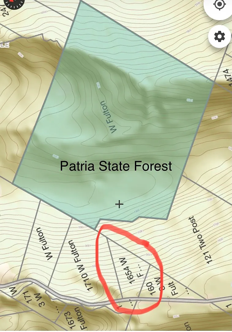 8.70 acres almost bordering Patria State Forest. Septic in place from pre existing residence, and Artesian well. Electric at road. Lots of wild life. Property is in the process of being cleaned up as things thaw out and warm up.