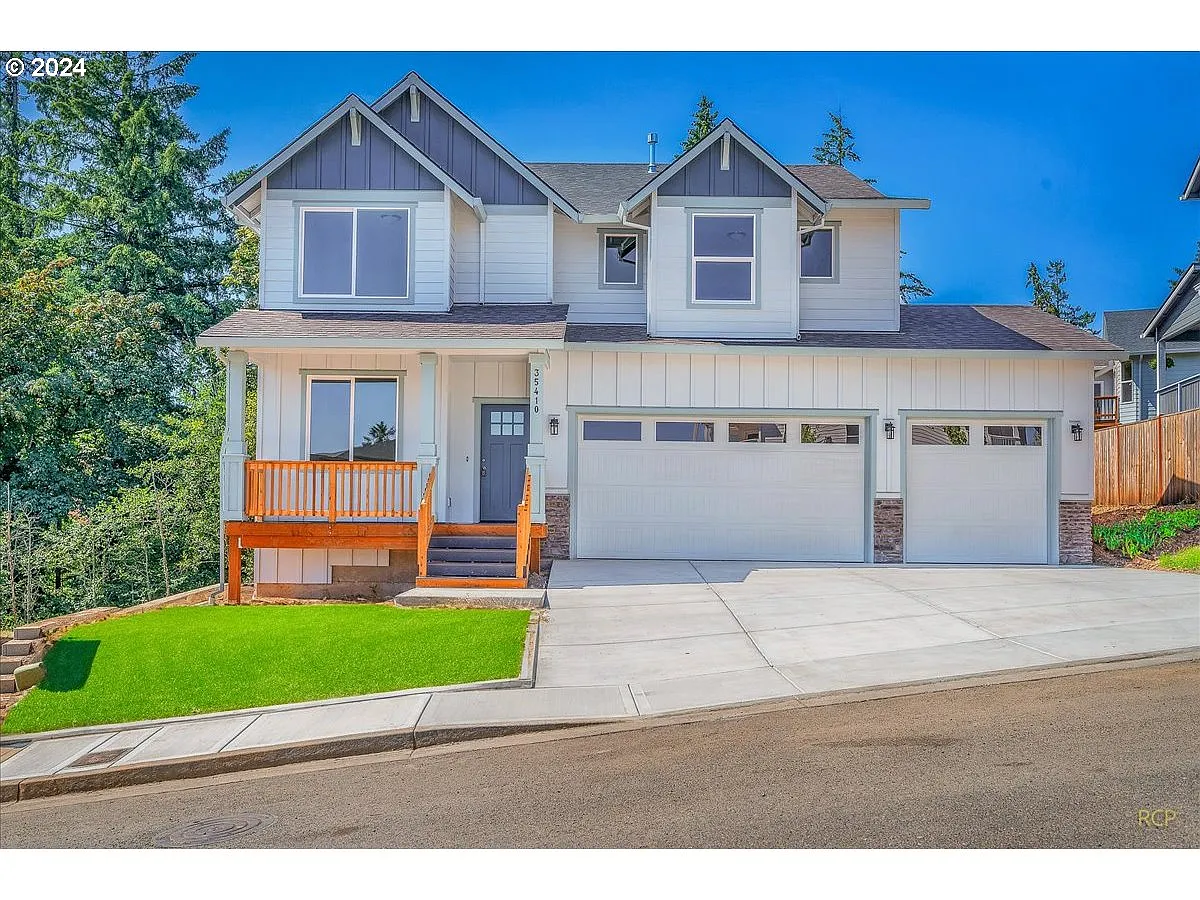 Welcome to your dream home, currently under construction in a unique and trending neighborhood! This stunning property boast 4 bedrooms, 2 1/2 baths and two dedicated studies. Inside you will find a warm and inviting living space with a beautiful fireplace, perfect for cozy nights in. The home features wall to wall carpet and durable vinyl flooring offering both comfort and practicality. The kitchen is a chef's delight with an island and quartz countertops, a built-in microwave, and a dishwasher. This home features a three-car garage, ensuring ample space for vehicles and storage. Enjoy your mornings or evenings on the back deck for some outdoor relaxation. You will find a short commute to the Portland metro area and is less then 5 miles away from the scenic Columbia River. Don't miss out on an incredible opportunity to own a piece of tranquility just a stone's throw away from the City!