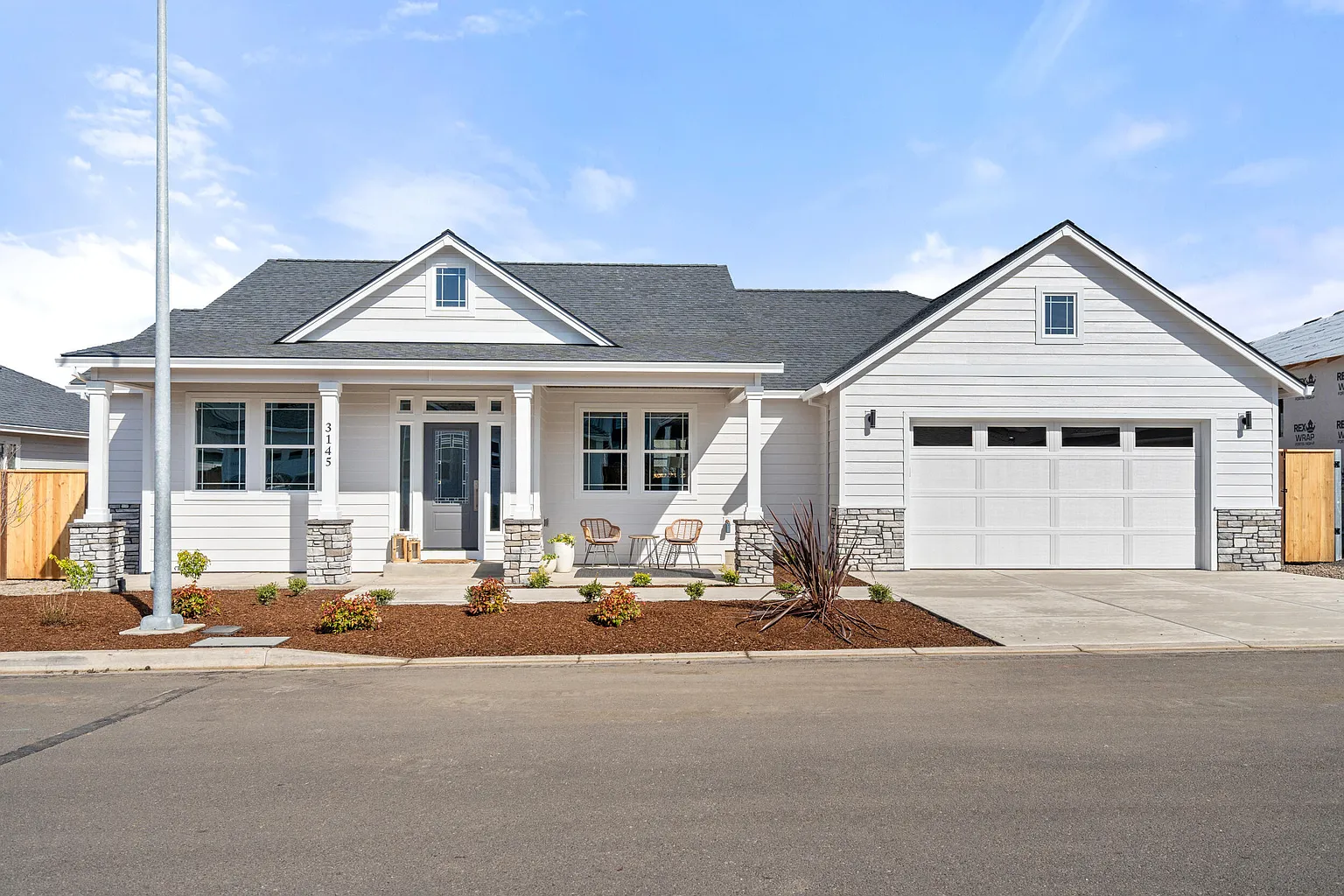 Brand New Construction by Black Oak Homes in The Cottages at Cedar Landing. This single-level home offers a functional split-bedroom layout, a spacious primary suite with ensuite bath featuring a luxurious soaking tub, and walk-in closets in every bedroom. The open-concept living area flows into a kitchen with a large island, butler's pantry, and under and over cabinet lighting for a refined finish and added functionality. Enjoy a covered patio, fully fenced and landscaped yard with built-in dog door, plus an EV plug for convenient at-home charging.