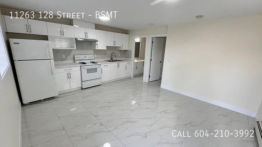 One Year Lease Required Security Deposit: Half Months Rent Introducing a brand-new build in Surrey's vibrant community, this cozy 1-bedroom, 1-bathroom above ground suite offers convenience and comfort. Located next to a SkyTrain station for easy commuting, the suite features a spacious bedroom with ample natural light, a modern bathroom, and a well-equipped kitchen. Street parking is available for added convenience. Don't miss out on this charming space - schedule a viewing today and make it your new home! 1 to book a viewing. Reference the address: "11263 128 Street, Basement"