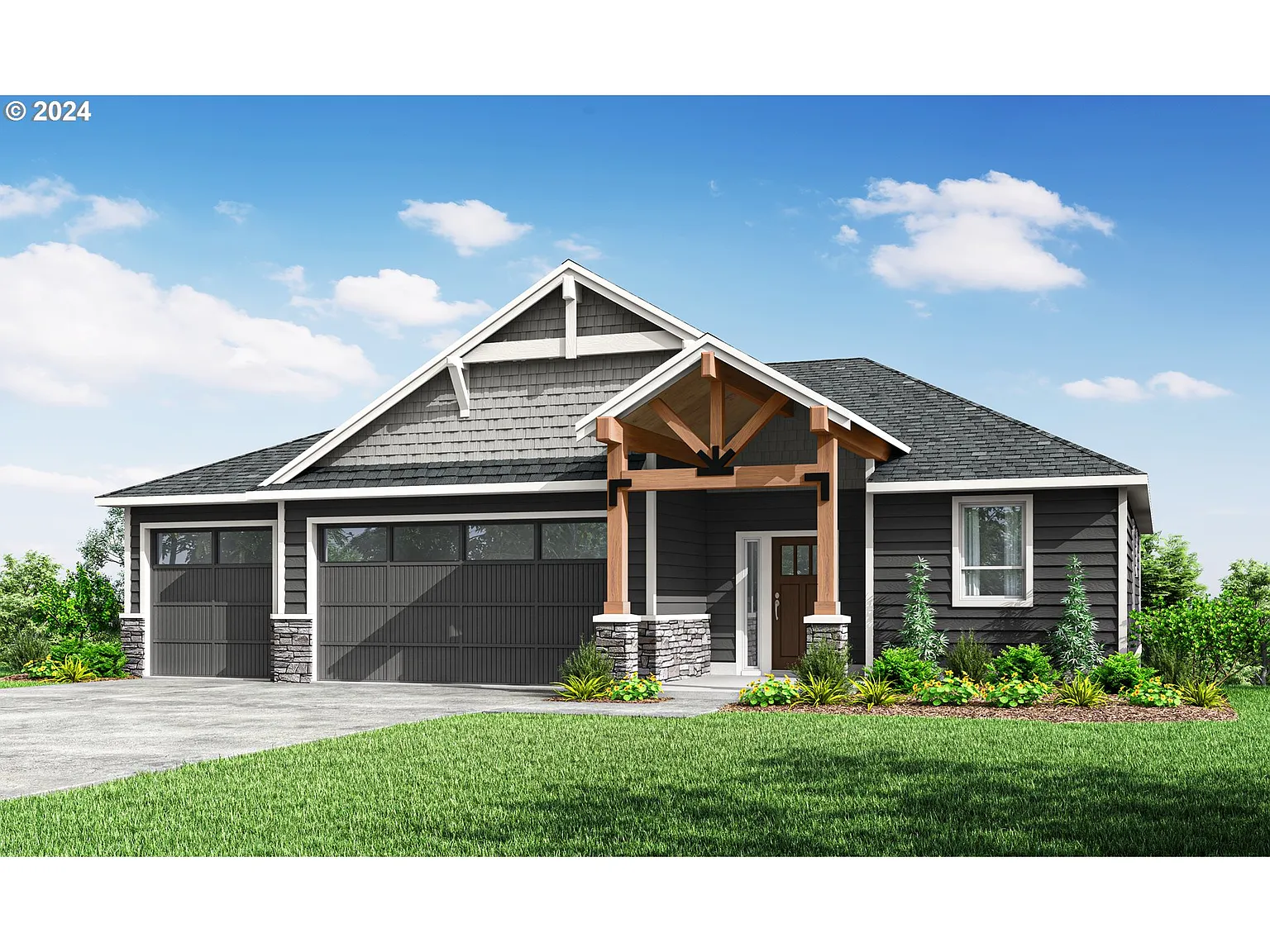 Private lot with back yard access from the lower level. This well-appointed Daylight Ranch offers great solutions for flexibility, storage, and main-level living. An inviting covered entry leads the way into a sophisticated entry with guest suite on the main level. An open great room features a fireplace, kitchen with corner pantry, large island and dining area with lots of windows to enjoy your private lot. The primary suite is located on the main floor and features a luxurious bathroom and walk-in closet. The main level is completed with a 3-car garage and a covered deck. Head downstairs and discover a second living room, perfect to use for a play room or media area, along with a covered outdoor patio, two secondary bedrooms, another full bath, and storage space. Sample photos. Camas School District & Community Center with outdoor pool. Estimated completion August 2024.