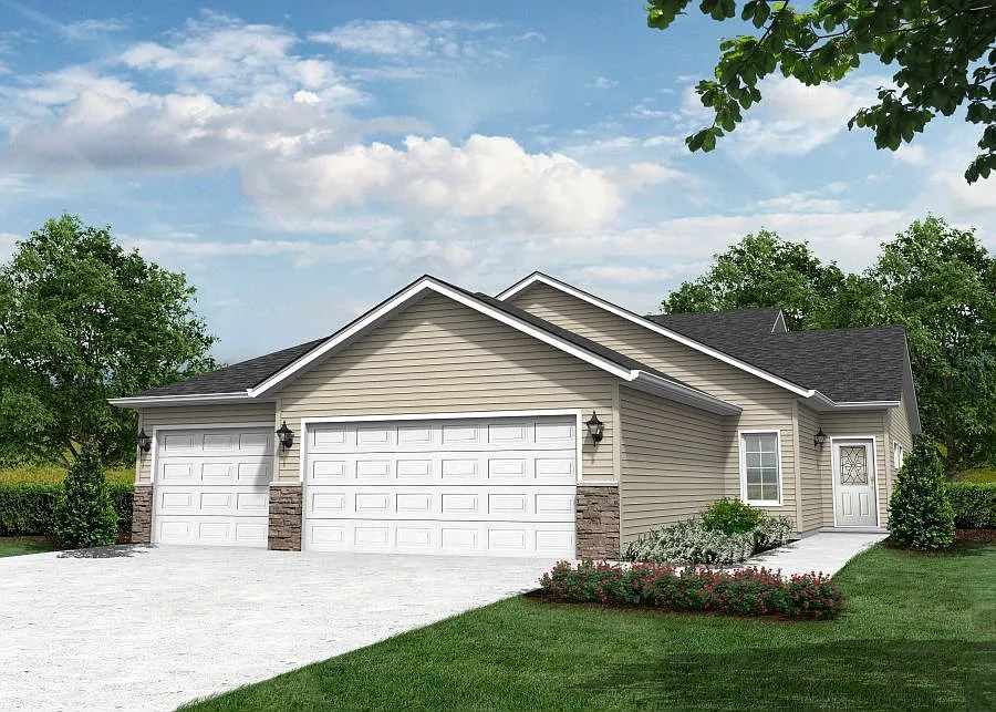 The Grande Fredricksburg offers every comfort a home needs with a great amount of living space, all step-free and on one level. This patio home floor plan has 3 bedrooms, 2 bathrooms, a den/optional 4th bedroom and a triple garage. The open floor plan allows the kitchen, dining, and living rooms to flow together beautifully. Worried about having enough space? This home also has a den, and a bright four-season sunroom that will surely become a favorite space. Look closely, and you'll see that this home is a storage lover's dream! The kitchen offers a extra large bonus pantry, a raised dishwasher storage underneath, soft close cabinets and drawers, and a dedicated pots and pans drawers for organized storage. Many of our patio home properties, but not all, offer neighborhood associations, which handle lawn care and snow removal. If this is something that interests you, please ask about which locations would include this option.