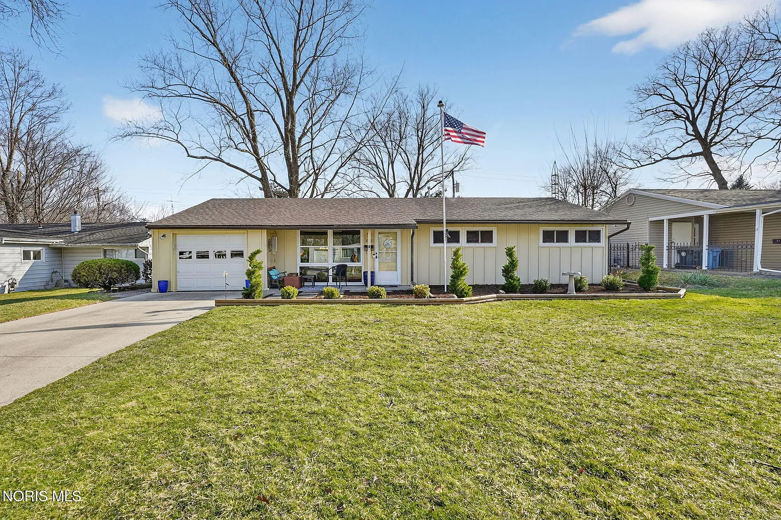 Welcome to this beautifully maintained 3-bedroom, 1-bath ranch offering comfort, style, and convenience. Step inside to an inviting open floor plan featuring stunning floor-to-ceiling windows that fill the main living space with an abundance of natural light. The kitchen includes a cozy dinette area that overlooks the fenced backyard which is perfect for enjoying everyday moments or entertaining. The updated bathroom adds a fresh, modern touch, while the main-level laundry room provides extra space for folding and storage. Enjoy peace of mind with major updates completed approximately 12 years ago, including the windows, roof, furnace, A/C, and concrete driveway. The attached garage is a standout feature! It is heated and equipped with electric, water, and a durable concrete floor, making it ideal for a variety of uses. This home has been refreshed with brand-new carpet and fresh paint throughout, and the nicely landscaped yard enhances its curb appeal. Relax on the charming front porch or unwind on the back patio, both are perfect spots for morning coffee or evening downtime. This adorable home is tucked away in a quiet neighborhood with convenient access to schools, parks and local amenities. Schedule your showing today!