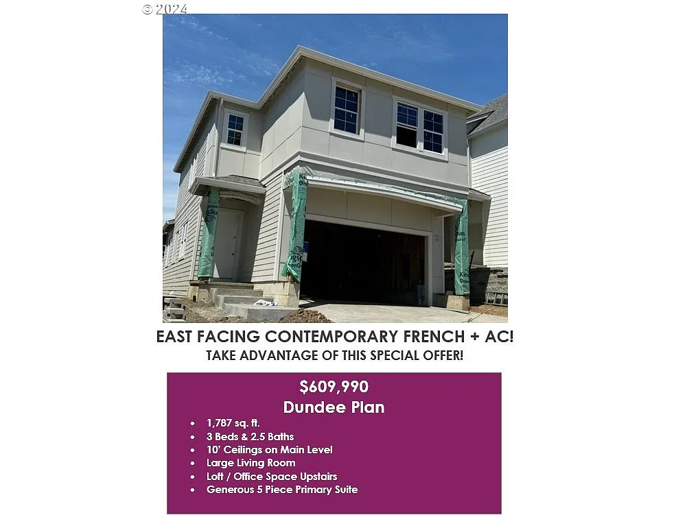 INCLUDED AC & Designer Package -East Facing Dundee! Daily on-site representatives to assist you. MODEL HOME OPEN! The Vineyard at Cooper Mountain the Dundee Lot 5 is a French Exterior offering 10 ft ceilings on the main floor and 9 ft upstairs, enjoy the feel of open space with lots of natural light, this home boasts 3 bedrooms and tech space, 2.5 bathrooms and patio off of the main dining/living space. The kitchen includes a quartz island, wall oven & microwave, and a gas 5 burner cooktop with hood for plenty of enjoyment. Indulge in the primary bath soak tub & shower. Spacious walk-in closet. The community offers plenty of walking and biking trails, nearby shopping at Progress Ridge and easy access to major freeways. Back yard is fenced & has some VIEWS