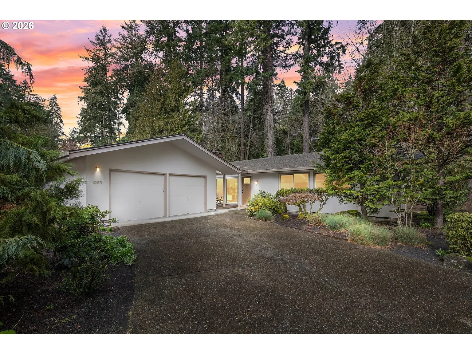 Mid century modern retreat just a short walk to downtown Lake Oswego. Refreshed, move in ready, and tucked at the end of a quiet street off North Shore, this home offers privacy, style, and convenience all in one.Vaulted ceilings and a warm brick fireplace anchor the light filled great room, while large triple pane windows and sliding glass doors connect the interior to three spacious decks with composite decking and cable railings—perfect for indoor outdoor living. The kitchen features solid butcher block countertops that are both beautiful and ideal for cooking.The home offers three bedrooms and two full bathrooms, with newer carpet and flooring throughout. A ductless HVAC system provides efficient heating and cooling, and individual cadet heaters in each room allow for personalized comfort. Enjoy lovely views of surrounding trees and pathways, complemented by sunny southern and western exposure.Outdoor spaces include a serene Japanese dry pond and meandering trail designed by Kurisu Gardens, creating a peaceful, nature inspired setting. The oversized 22’ x 29’ garage offers excellent space for a workshop, storage, or recreational gear.Three Lake Oswego lake easements are available to join—North Lake Club, South View Club, and Lakewood Yacht Club—offering optional access to kayaking, boating, and swimming (buyer to verify with Lake Corporation).Located just blocks from restaurants, parks, and shops, this welcoming street is shared by only four homes and feels like a hidden cove away from the bustle. Seller is a licensed Oregon broker.