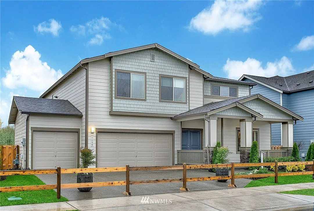 A brand new Community in Buckley featuring Open Floor Plan Concepts. The Residence 4 features 4 bedrooms upstairs and bedroom and bath on the main, slab granite counters in Kitchen, SS appliances, rich dark cabinets, gas fireplace, outdoor living covered deck, luxury vinyl plank hardwood floors in the kitchen, and entryway, spacious 5 piece master suite, convenient upstairs laundry, & 3 car garage! Images used for representation only!