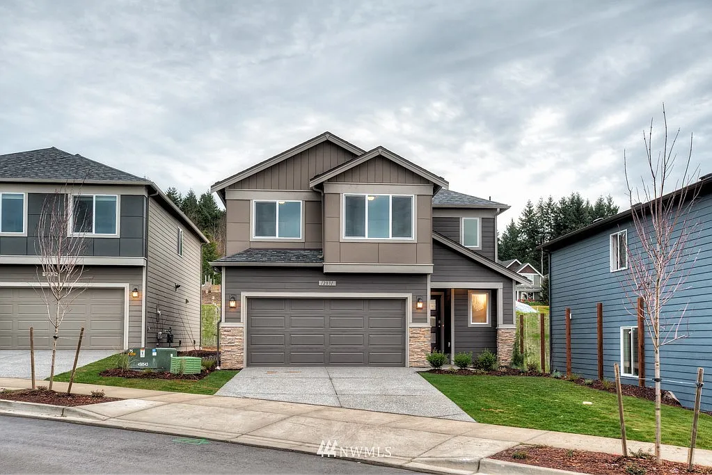 Daisy Meadows by Pacific Ridge Homes is a beautiful new community of 45 homes nestled within the stunning mountain lined landscape of Sultan! These newly inspired homes are tastefully planned for the modern homebuyer, each with designer selected finishes. The Shannon on this private corner lot will impress! The open and airy main floor includes foyer to welcome guests, Elegant Details Chef's island kitchen, dining area and walk-in pantry, and generous great room warmed by fireplace for entertaining. The upper floor boasts tech niche, primary suite with private bath and separate walk-in closet, 2 spacious bedrooms, main bath with tub, and utility room. Don’t forget the efficient Heat Pump for A/C, tech wiring and Home Automation features!