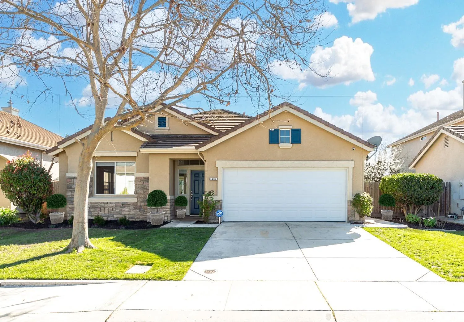 Welcome home to Spanos East's Masterpiece enclave, designed for community and families. Conveniently a hop & skip or bike ride away to Lodi Unified schools, w/ access to parks, playgrounds, clubhouse, massive lap pool, & tennis courts, low HOA. A rare opportunity to make home in the highly-coveted neighborhood. Charming exterior stone details & low-maintenance landscaped yards. NEW tile, laminate wood, & carpet floors throughout. NEW fresh interior paint, Energy-efficient NEW oven, NEW microwave, NEW ceiling fans & NEW chandelier. Paid-off Smart home security system, & smart home energy-efficient thermostat. Spacious living room & dining open layout. Large chef's open layout kitchen w/ island, & a superb lengthy buffet counter, great for those large family gatherings. North-facing home w/ large windows bask in bright, natural sunlight. Energy-efficient dual-paned windows. Lots of storage & closets including a walk-in chef's pantry, a step-in coat/broom closet, 2nd hallway closet w/ floor-to-ceiling shelves, & cabinets galore. Large master bedroom w/huge walk-in closet & a soak-in tub. Dine under the stars on the paved backyard patio w/pergola,lemon & nectarine trees. Move-in ready.