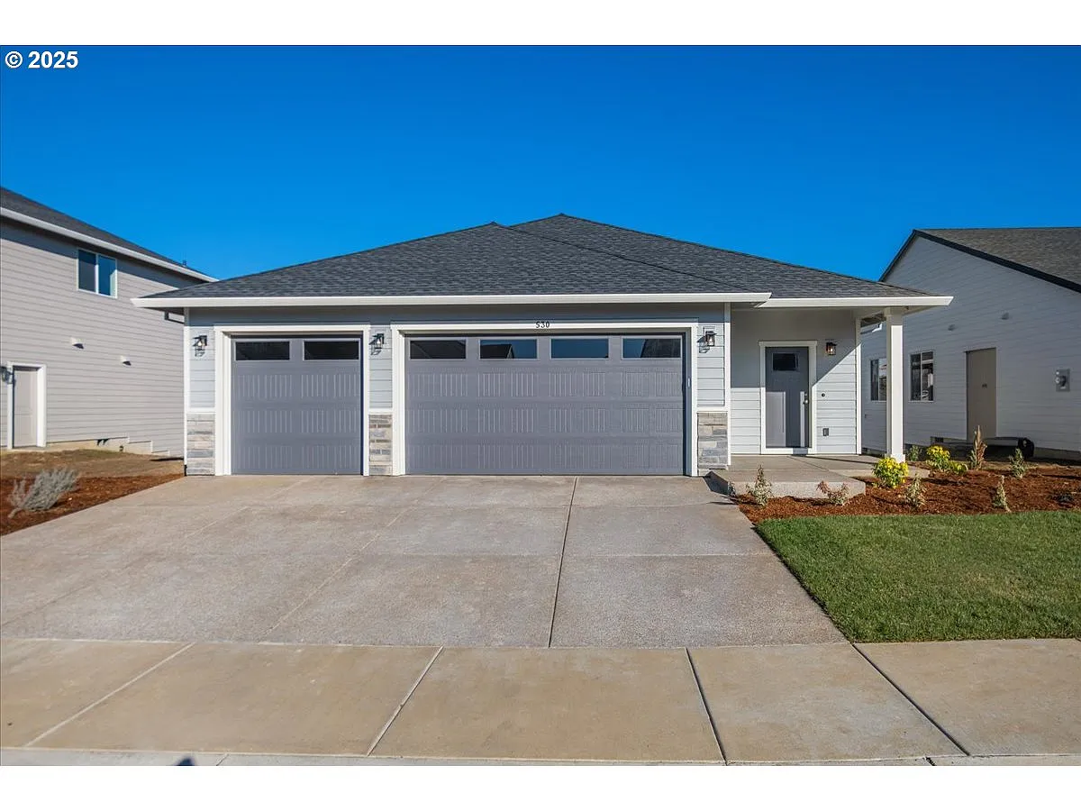 New Chad E Davis Built Home. MODEL HOME OPEN SAT/SUN 12-4PM. One level with 3 car garage. 9ft ceilings with coved Great room and with Fireplace. Well appointed kitchen with Quartz countertops, SS appliances and full tiled backsplash. Primary suite with full bath and walk in closet. Front Yard landscaping with irrigation included. Taxes TBD.