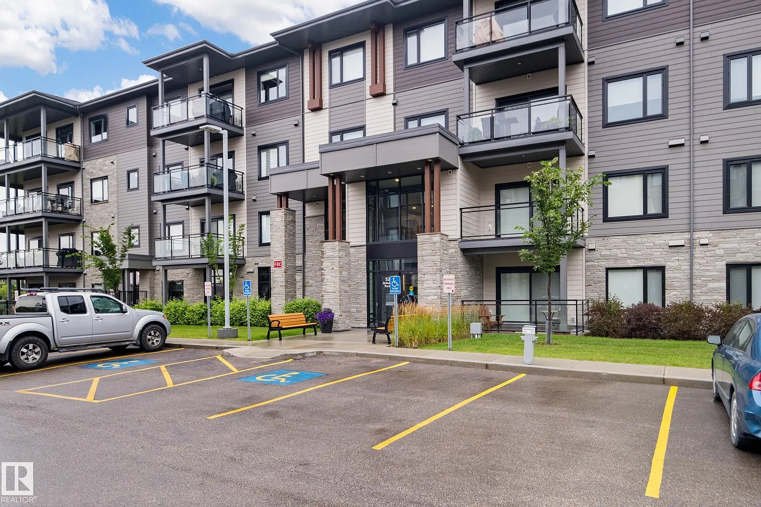 Mr and Mrs Clean live here! Immaculate penthouse condo in beautiful Veritas Luxury building. "Stand alone unit" with no neighbour units adjoining. 2 bedrooms, 2 baths and luxury finishes. Top floor featuring 10' ceilings, wall to wall windows with West exposure for awesome deck. Natural gas bbq included and room to entertain on the summer days. Air conditioning and forced air heating. Outstanding upgraded unit with custom window coverings and extra cabinets (great coffee or wine bar). Kitchen includes gorgeous quartz countertops and large island, stainless steel appliances. Two titled parking stalls- one underground right next to the elevator and one in front of the building. In suite laundry. Amenities include fitness room, social room, guest suite. Located on a cul de sac bordering park and lake and steps away from shops, restaurants, public transportation and minutes from downtown. Ultimate Urban living. All shopping and amenities close by. Great access to downtown, Edmonton Garrison