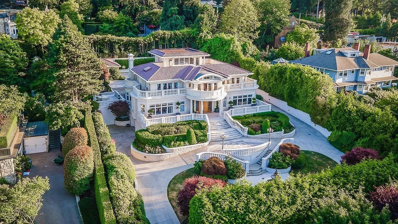 Discover unparalleled luxury in this prestigious Point Grey Estate, where sophistication meets coastal grandeur. Perched on the high side of Belmont Ave; This extraordinary 10,077 sqft. residence showcases 7 bedrooms and 11 bathrooms, masterfully designed with European architectural influences and modern elegance. A grand foyer with twin circular staircases and Italian marble sets a magnificent tone, while custom millwork and exceptional craftsmanship define every space. Resort-style amenities include an indoor pool, spa, theatre, and entertainment suites. Sweeping ocean vistas and mountain panoramas create an ever-changing backdrop through expansive windows and terraces. Nestled in an exclusive gated setting, this estate offers proximity to beaches, parks, top-rated schools, and more.