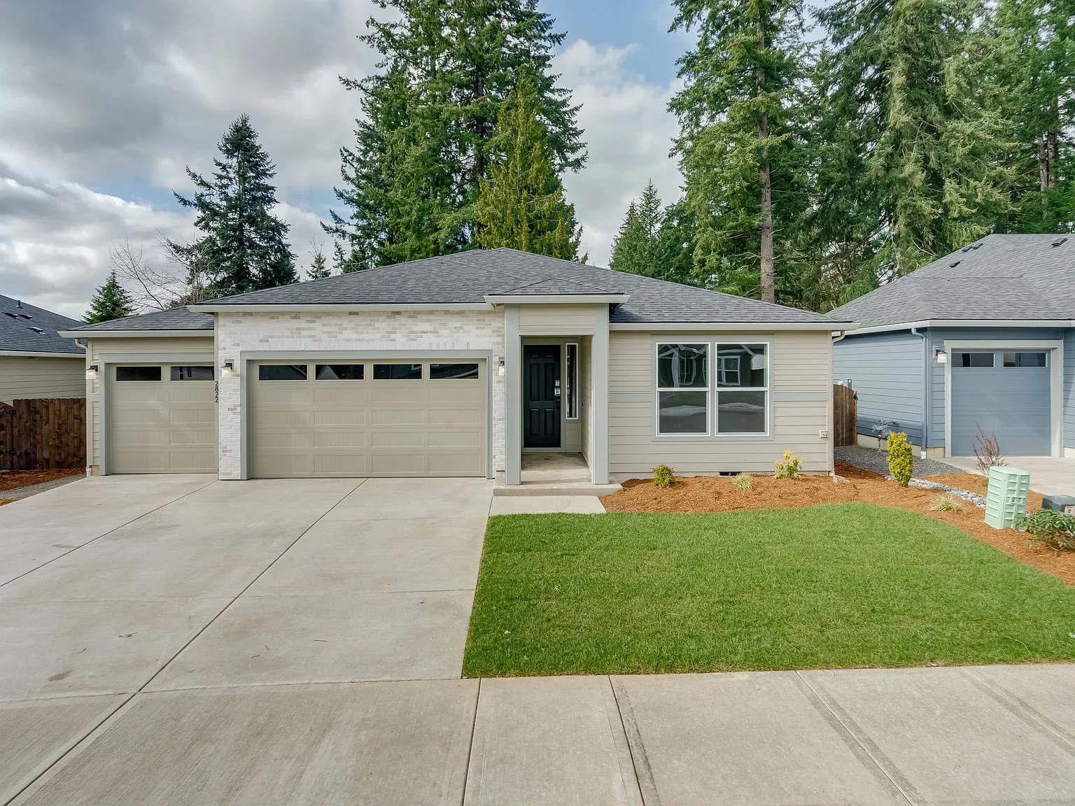 Single Level with 3-Car Garage and Impressive Kitchen! This spacious single-story home features a 3-car garage and an impressive kitchen with a huge island and back-to-back cabinets for extra storage, plus a large covered porch, perfect for outdoor living. Inside, enjoy 9-foot ceilings, painted white cabinets, quartz slab countertops in the kitchen and bathrooms/laundry, and stainless gas appliances. The kitchen also boasts a full-height 4×16-inch subway tile backsplash, under-cabinet and pendant lighting. The open layout includes a great room with a sleek linear-style fireplace and laminate plank flooring throughout the living areas. The master bath features a tile shower, and the bathrooms have durable tile flooring. The laundry room includes cabinetry and a convenient sink. This home also comes with full landscaping, fencing, garage door opener(s), and an electric car charger circuit. Located in the desirable River Bend community in Battle Ground, WA, it offers easy access to parks, walking trails, and nearby shopping, with an annual HOA fee of just $330. **No Seller Paid Commission**