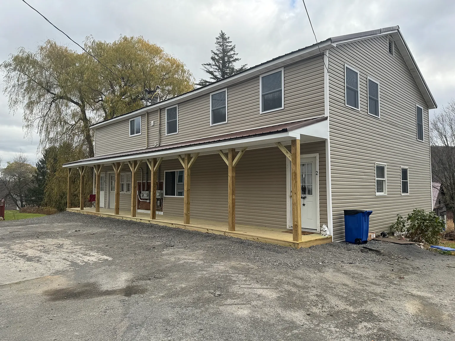 Complete gut renovation of a 2nd floor apartment with 1,500 square feet total located in the Dorloo section of Cobleskill, 15 minutes from downtown Cobleskill and 30 minutes from Cooperstown. New Central AC and Heat. New windows, insulation, electric, plumbing. New flooring throughout. New paneled doors. 3 large plush carpeted bedrooms with spacious closets, including one large walk-in closet. Kitchen is 14' x 21' with a 4' x 10' pantry attached to the kitchen, Maytag matching appliances, Pergo high end plank flooring. 14' x 20' living room with plush carpet. Deep bathroom with double sinks, shower and tub and linen closet. New covered front porch. Coin Operated washer and dryer is in the basement for shared use. Plenty of parking. Renter pays for electric, phone, and cable/internet. Water is from an onsite well. Renter must dispose of their own garbage, and can contract with local carting companies. Garbage cans to be placed on side of building. No smoking within 50' of the building. Parking for up to two cars is acceptable. Small dog or cat ok with deposit. Tenant responsible to keep apartment clean, and stairs free from any debris. Placing 2 chairs on front porch is acceptable, but porch must be clear for walking. 6-month lease.