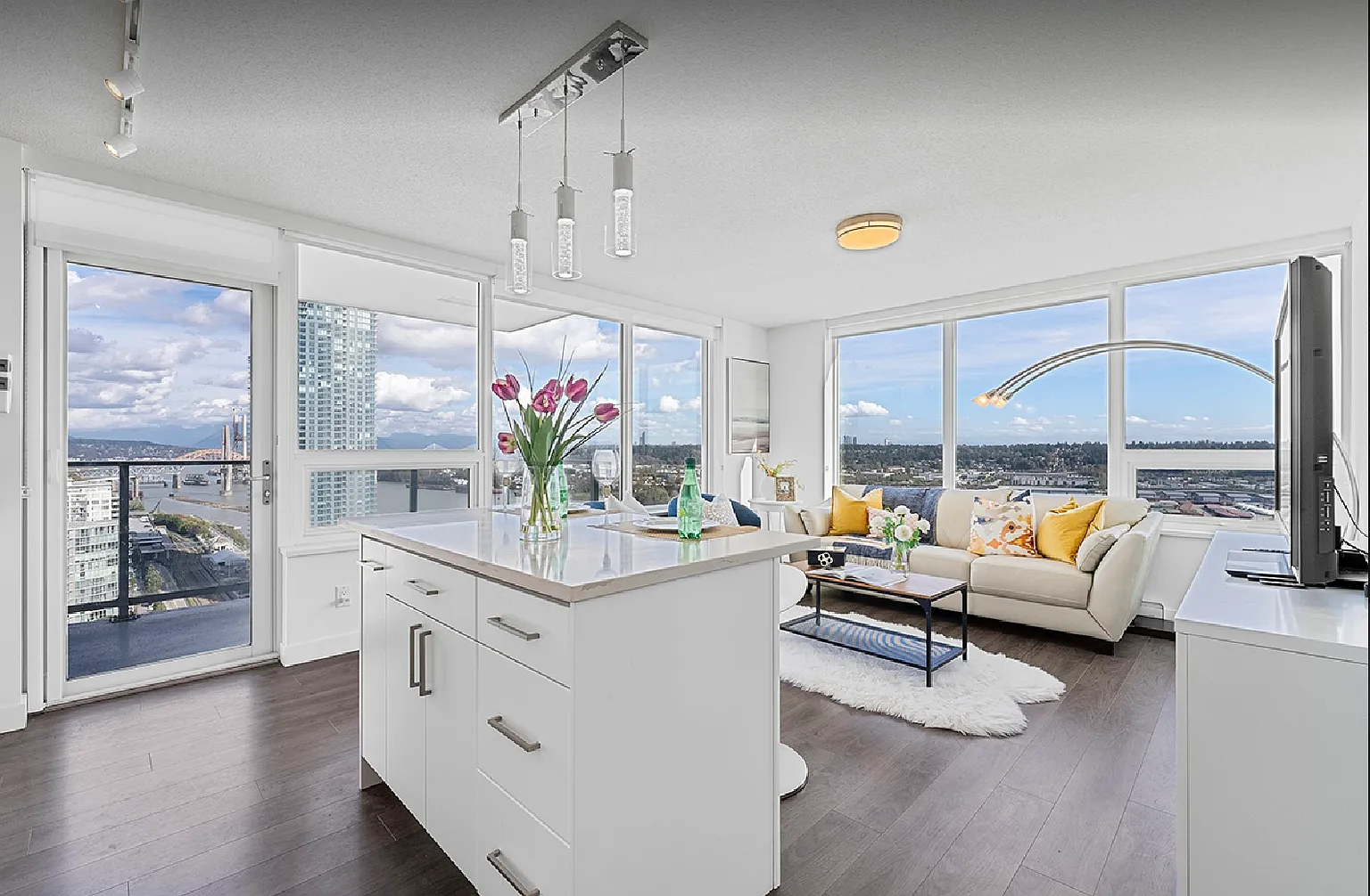 Located on the Quayside Esplanade boardwalk, just steps away from Skytrain, theatres, River market. You will love this rarely available SOUTHEAST CORNER unit with a PANORAMIC VIEW of Fraser River and Mountain Baker. Owner pays water & gas, renters pay electric. No pets no smoke. Renters have to obey property laws and regulations. Otherwise the fines created by property management will apply to the renters.