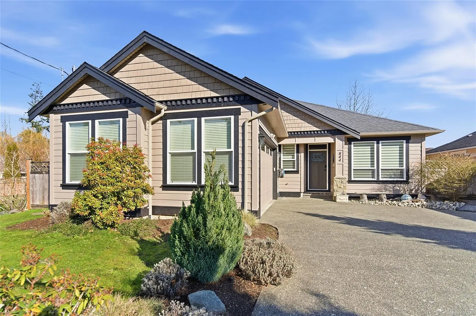 Exceptional custom-built rancher offering quality craftsmanship and thoughtful design throughout. This 3 bedroom + den home features an open concept layout with 9-ft ceilings, solid oak flooring in the main areas, and elegant coffered ceilings in the living and dining rooms. The bright kitchen enjoys morning sun and includes granite countertops, a sit-up island, stainless steel appliances, gas cooktop, and excellent workspace. The living room features a gas fireplace with custom cabinetry, while the den offers an electric fireplace and tray ceiling. The spacious primary bedroom includes a large walk-in closet with custom shelving and a luxurious ensuite with deep tub and separate shower. Heated floors warm the entry, laundry and bathrooms. Outside, enjoy a fully fenced private backyard, oversized driveway with RV/boat parking, new shed on concrete (2025), and double garage with workbench. Just 3 minutes to Morningstar Golf Course and French Creek Marina. Schedule your viewing today!