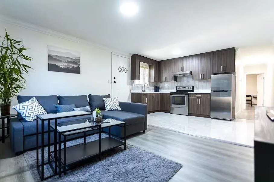 Refined 2-Bedroom, 1-Bathroom Basement Suite in Surrey Ideal for Up to 6 Guests Experience the ultimate in modern living with this stylish, fully-equipped 2-bedroom, 1-bathroom basement suite, nestled in a peaceful and friendly neighborhood. Designed with comfort and convenience in mind, this retreat offers private, ground-level access, perfect for those seeking a relaxing and secure stay. Key Features: Private Entrance & Smart Lock: Enjoy peace of mind with secure self-check-in/out and a private entry. Ample Parking: Private driveway with space for up to 2 vehicles. Comfortable Bedrooms: Two spacious bedrooms, each with a queen-sized bed. The suite can accommodate up to 6 guests with the additional pull-out couch in the living area. Modern Bathroom: Relax in a well-appointed bathroom featuring a stand-up shower and bathtub. Fully Equipped Kitchen: Prepare meals with ease using the stove, oven, microwave, fridge, and freezer. High-Speed Internet: Stay connected with reliable Wi-Fi throughout the suite. Entertainment: 43-inch Smart TVs in the living room for your viewing pleasure. Coffee & Tea Station: Complimentary Keurig coffee pods and tea available for your convenience. Landscaped Yard: Professionally landscaped front and backyards, offering a tranquil outdoor space. Work-Friendly Space: One of the bedrooms is furnished with a study/work space table for productivity. Laundry: Laundry facilities are available at a nearby laundromat, just 5 minutes away. Prime Location: Proximity to Local Attractions: Conveniently located near Kwantlen Park University, Newton Athletic Park, Surrey Hospital, and vibrant shopping, dining, and transit options. Easy Access to Transportation: Just 27 km from Bridgeport Skytrain Station and close to major roads for easy commutes to nearby areas. Whether you're here for business or leisure, this charming basement suite offers the perfect balance of comfort, convenience, and style. Book your stay and discover the difference! Our furnished rental properties are perfect for those seeking comfort and convenience for extended stays. Each unit is fully equipped and move-in ready, with all utilities and bills included in the rental price no hidden costs or surprises. We offer a 90-day minimum stay to ensure stability and flexibility for our tenants. A refundable damage deposit is required for added peace of mind. Choose from a variety of furnished condos, basements, and homes tailored to suit your lifestyle and needs. Whether you're relocating, traveling for work, or in need of temporary housing, our properties provide a stress-free, high-quality living experience.